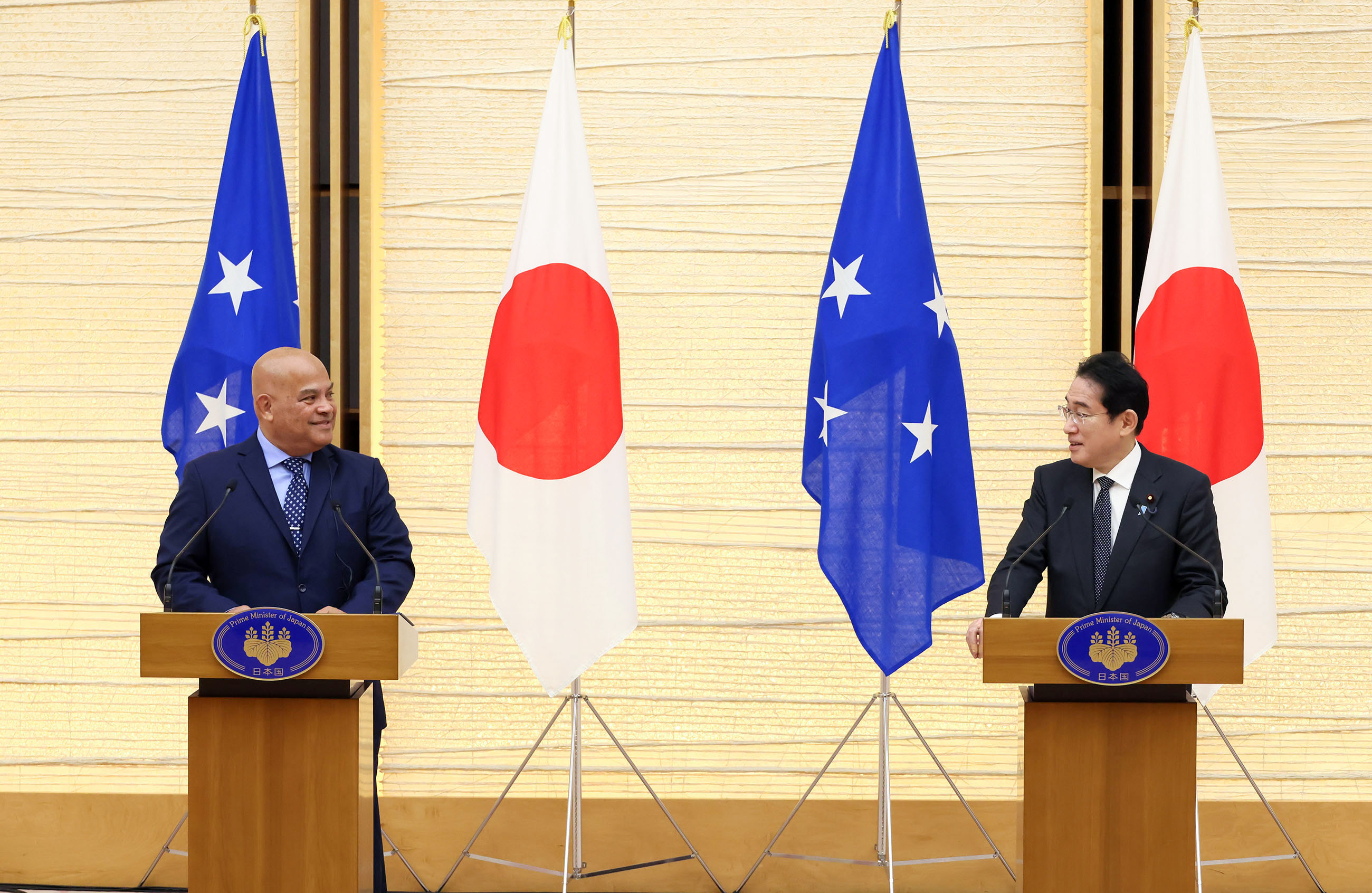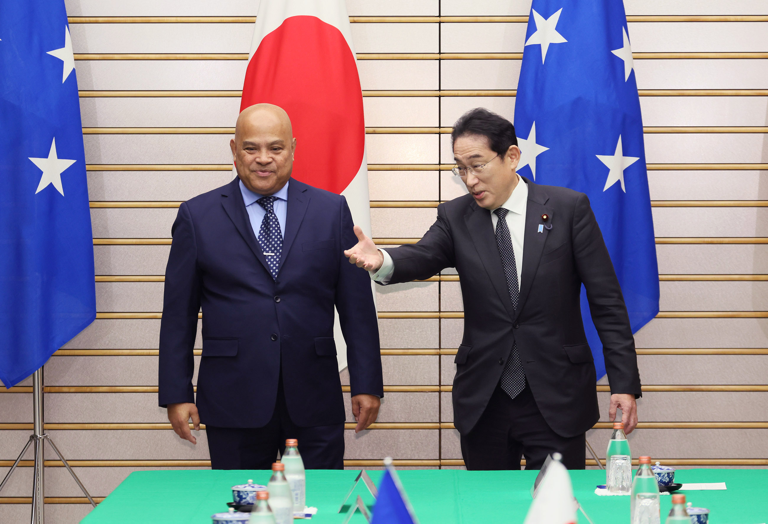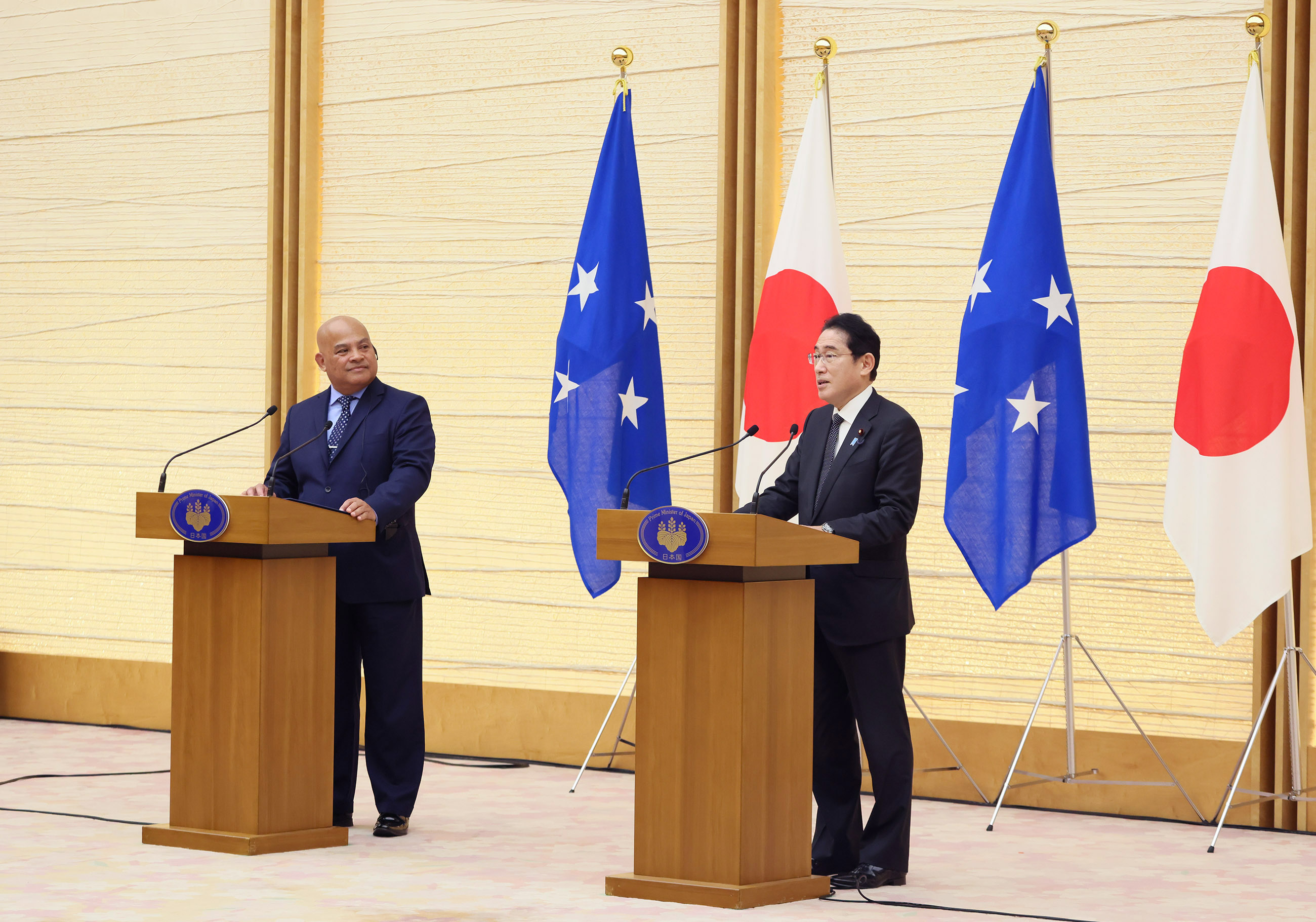 #外交・安全保障 #日・ミクロネシア首脳会談 日・ミクロネシア首脳会談等 更新日:令和5年2月2日 総理の一日 ツイート 日・ミクロネシア首脳会談1 パニュエロ・ミクロネシア大統領を出迎える岸田総理 儀じょう隊による儀礼1 儀じょう隊による儀礼2 儀じょう隊による儀礼3 儀じょう隊による儀礼4 日・ミクロネシア首脳会談2 日・ミクロネシア首脳会談3 日・ミクロネシア首脳会談4 署名式・交換式1 署名式・交換式2 共同記者発表1 共同記者発表2 共同記者発表3 共同記者発表4 共同記者発表5 関連動画開く閉じる 動画が再生できない方はこちら(政府広報オンライン) 令和5年2月2日、岸田総理は、総理大臣官邸でミクロネシア連邦のディビッド・パニュエロ大統領と首脳会談等を行いました。 儀じょう隊による儀礼に続き、両首脳は会談を行い、その後、署名式・交換式及び共同記者発表を行いました。