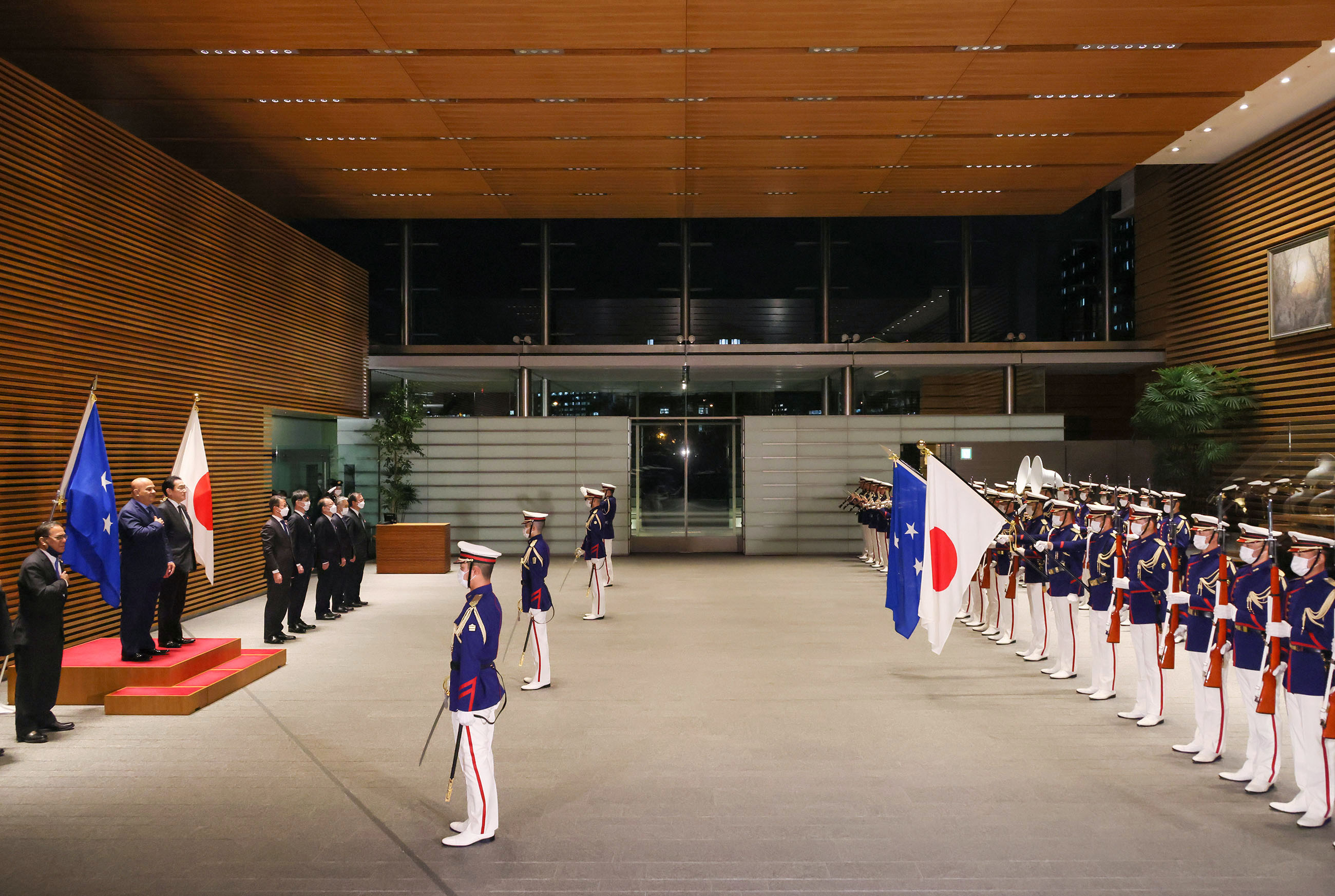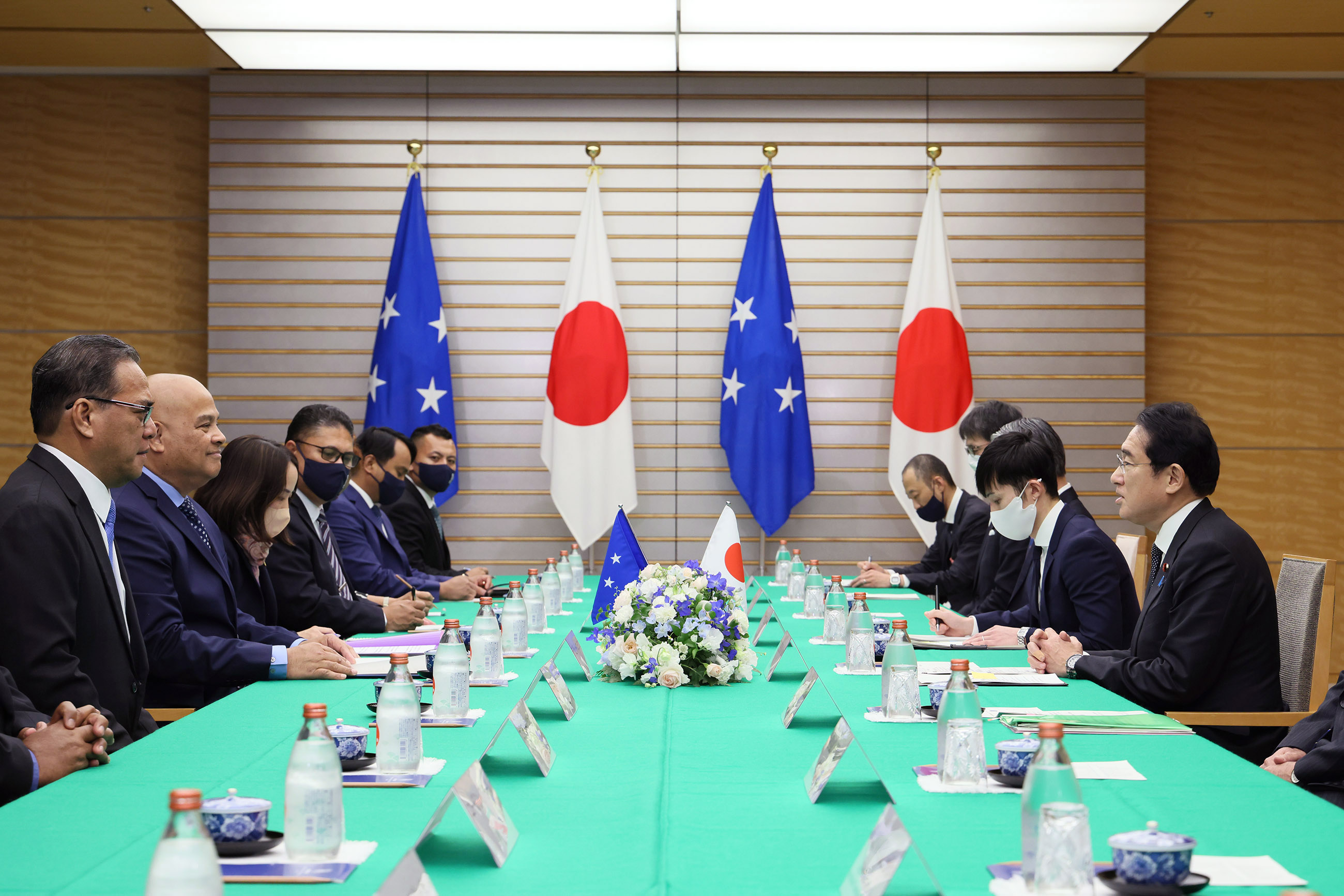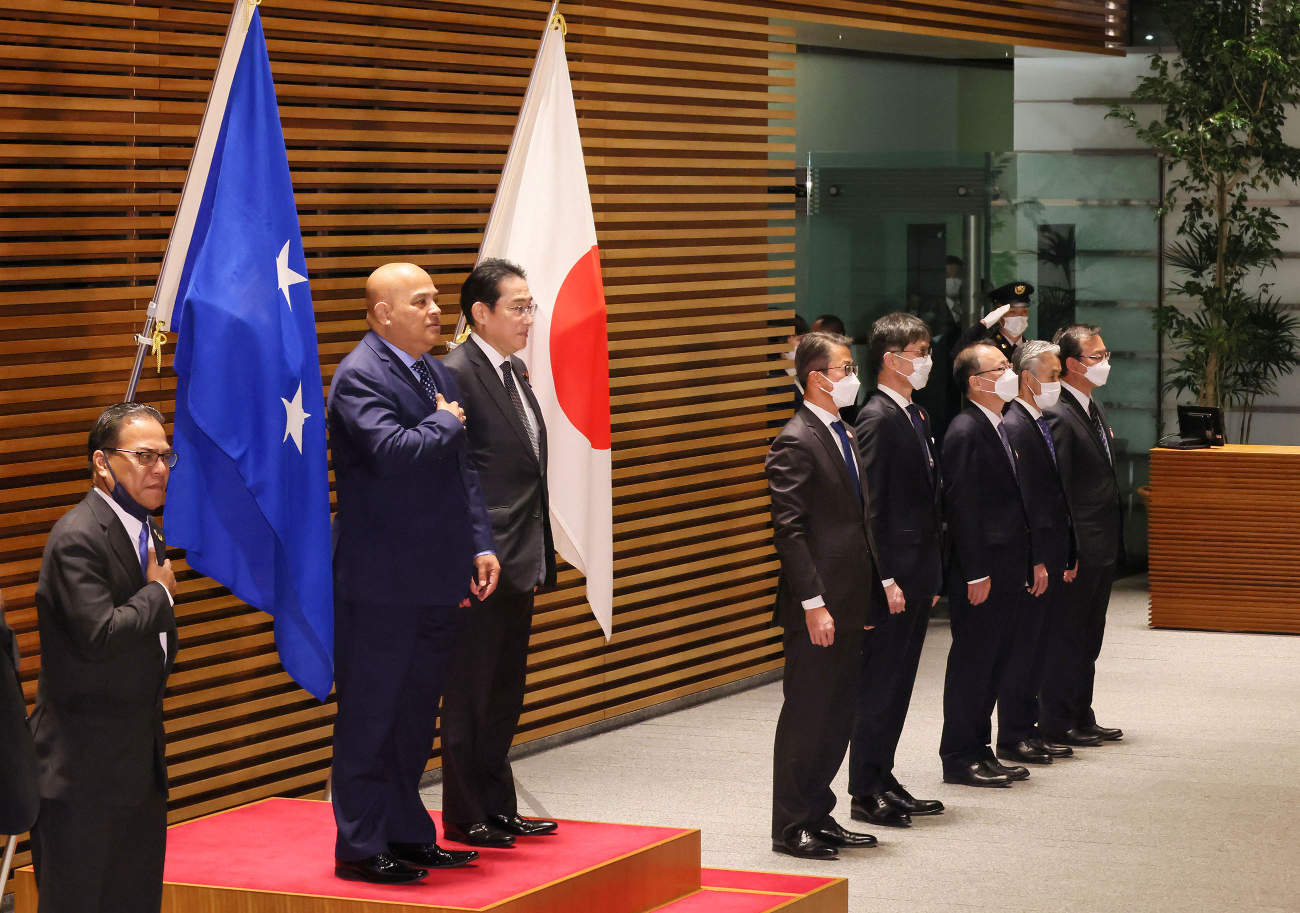 #外交・安全保障 #日・ミクロネシア首脳会談 日・ミクロネシア首脳会談等 更新日:令和5年2月2日 総理の一日 ツイート 日・ミクロネシア首脳会談1 パニュエロ・ミクロネシア大統領を出迎える岸田総理 儀じょう隊による儀礼1 儀じょう隊による儀礼2 儀じょう隊による儀礼3 儀じょう隊による儀礼4 日・ミクロネシア首脳会談2 日・ミクロネシア首脳会談3 日・ミクロネシア首脳会談4 署名式・交換式1 署名式・交換式2 共同記者発表1 共同記者発表2 共同記者発表3 共同記者発表4 共同記者発表5 関連動画開く閉じる 動画が再生できない方はこちら(政府広報オンライン) 令和5年2月2日、岸田総理は、総理大臣官邸でミクロネシア連邦のディビッド・パニュエロ大統領と首脳会談等を行いました。 儀じょう隊による儀礼に続き、両首脳は会談を行い、その後、署名式・交換式及び共同記者発表を行いました。