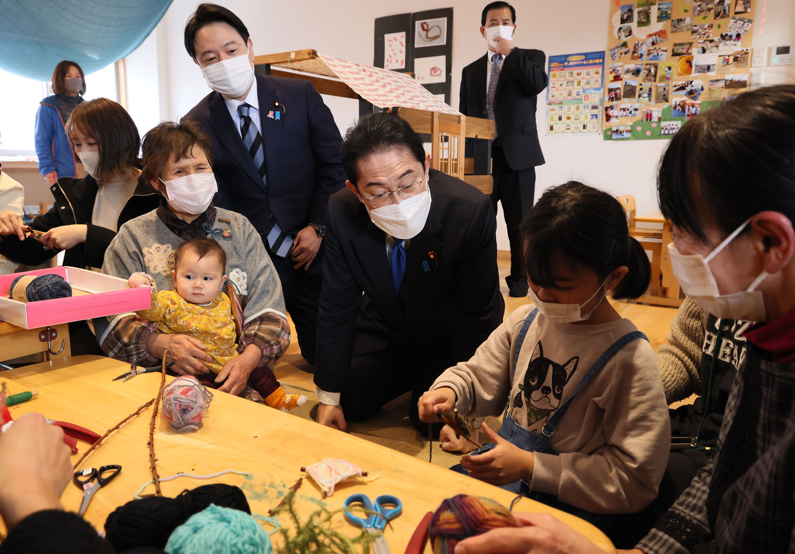 #新しい資本主義 #分配戦略 #こども・子育て政策 岡山県訪問 更新日:令和5年2月19日 総理の一日 ツイート こども政策対話で参加者と対話する岸田総理1 子育て政策の説明を受ける岸田総理1 子育て政策の説明を受ける岸田総理2 なぎチャイルドホームを視察する岸田総理1 なぎチャイルドホームを視察する岸田総理2 なぎチャイルドホームを視察する岸田総理3 なぎチャイルドホームを視察する岸田総理4 なぎチャイルドホームを視察する岸田総理5 なぎチャイルドホームを視察する岸田総理6 こども歌舞伎を視察する岸田総理1 こども歌舞伎を視察する岸田総理2 こども歌舞伎を視察する岸田総理3 こども歌舞伎の参加者との記念撮影 しごとコンビニを視察する岸田総理1 しごとコンビニを視察する岸田総理2 しごとコンビニを視察する岸田総理3 こども政策対話で参加者と対話する岸田総理2 こども政策対話で参加者と対話する岸田総理3 こども政策対話で参加者と対話する岸田総理4 こども政策対話で参加者と対話する岸田総理5 こども政策対話で参加者と対話する岸田総理6 こども政策対話で参加者と対話する岸田総理7 こども政策対話で参加者と対話する岸田総理8 こども政策対話で参加者と対話する岸田総理9 こども政策対話の参加者との記念撮影 関連動画開く閉じる 動画が再生できない方はこちら(政府広報オンライン) 令和5年2月19日、岸田総理は、岡山県を訪問しました。 総理は、奈義町(なぎちょう)のなぎチャイルドホームで子育て政策の説明を受けた後、施設を視察し、続いて、奈義町文化センターでこども歌舞伎を視察した後、奈義しごとスタンドでしごとコンビニを視察しました。その後、奈義町立図書館でこども政策対話を行い、最後に、本日の視察等について会見を行いました。