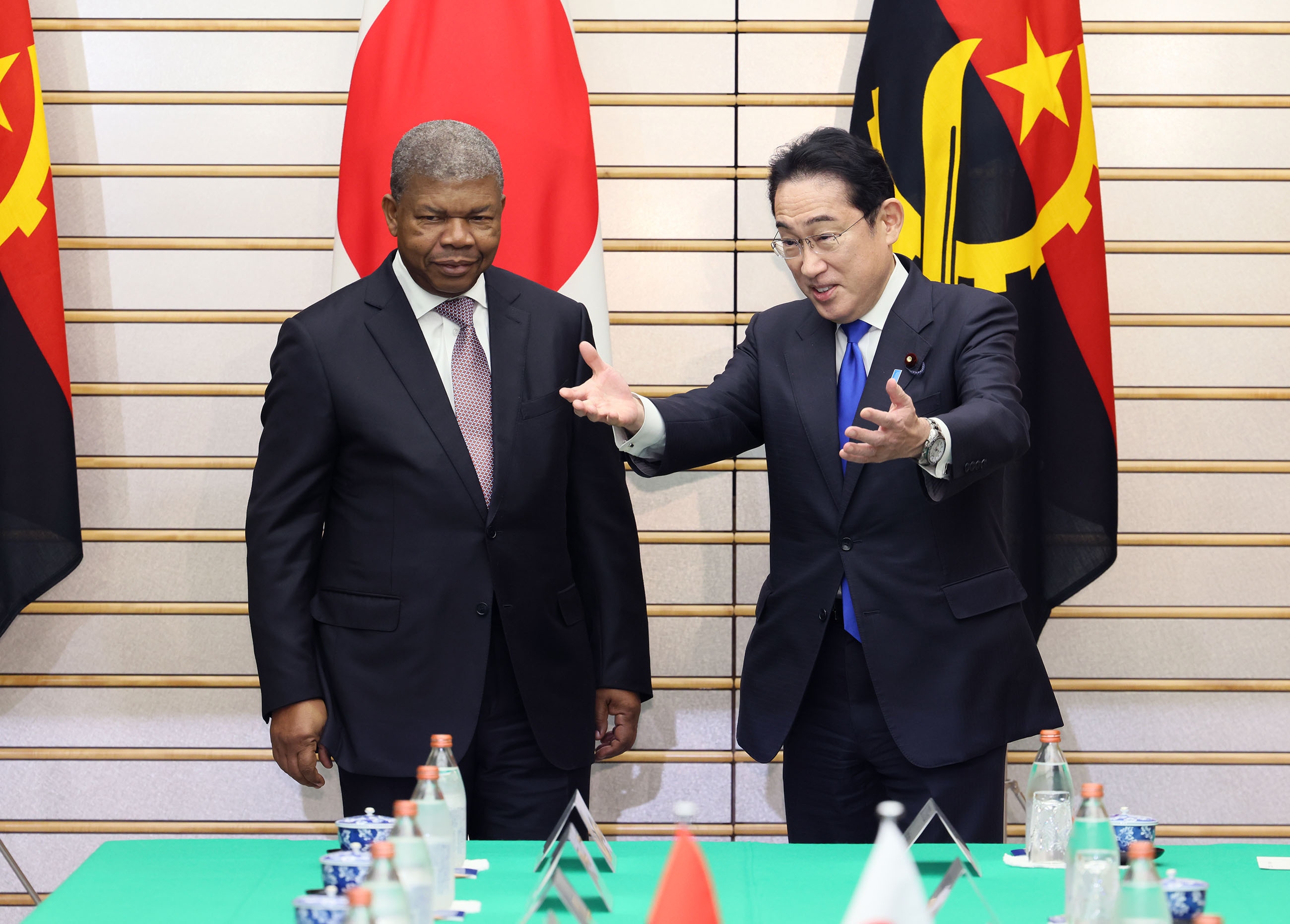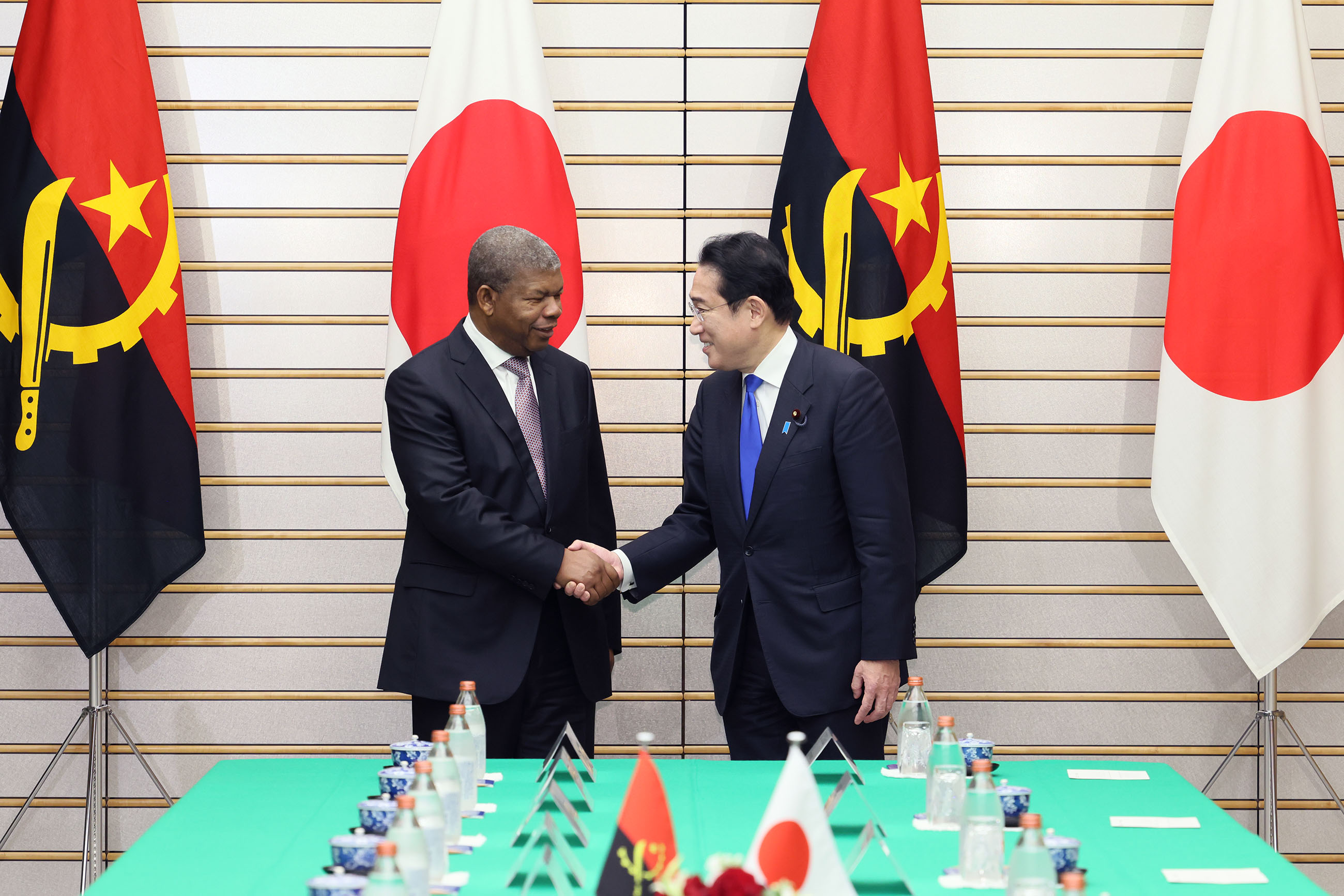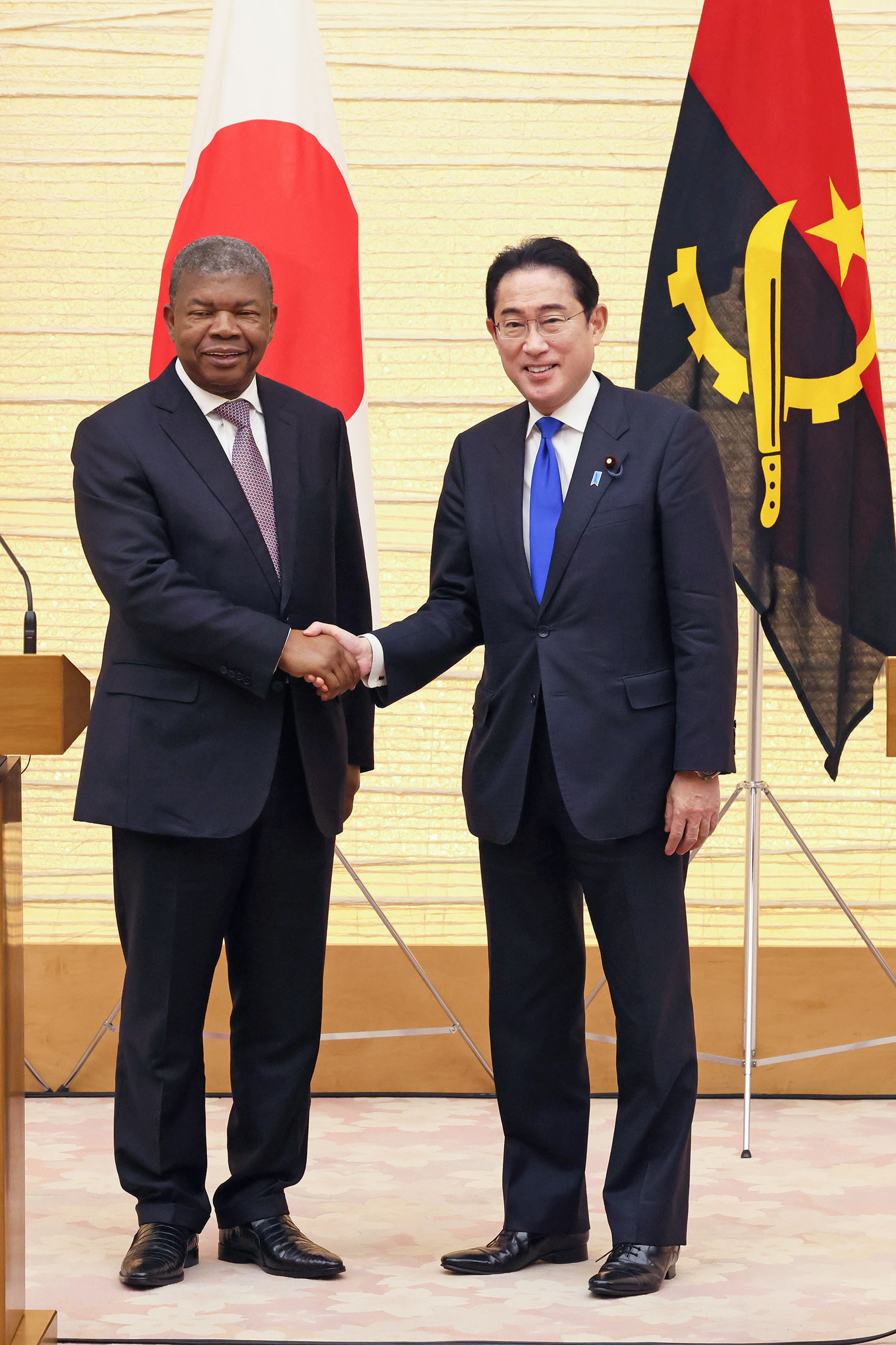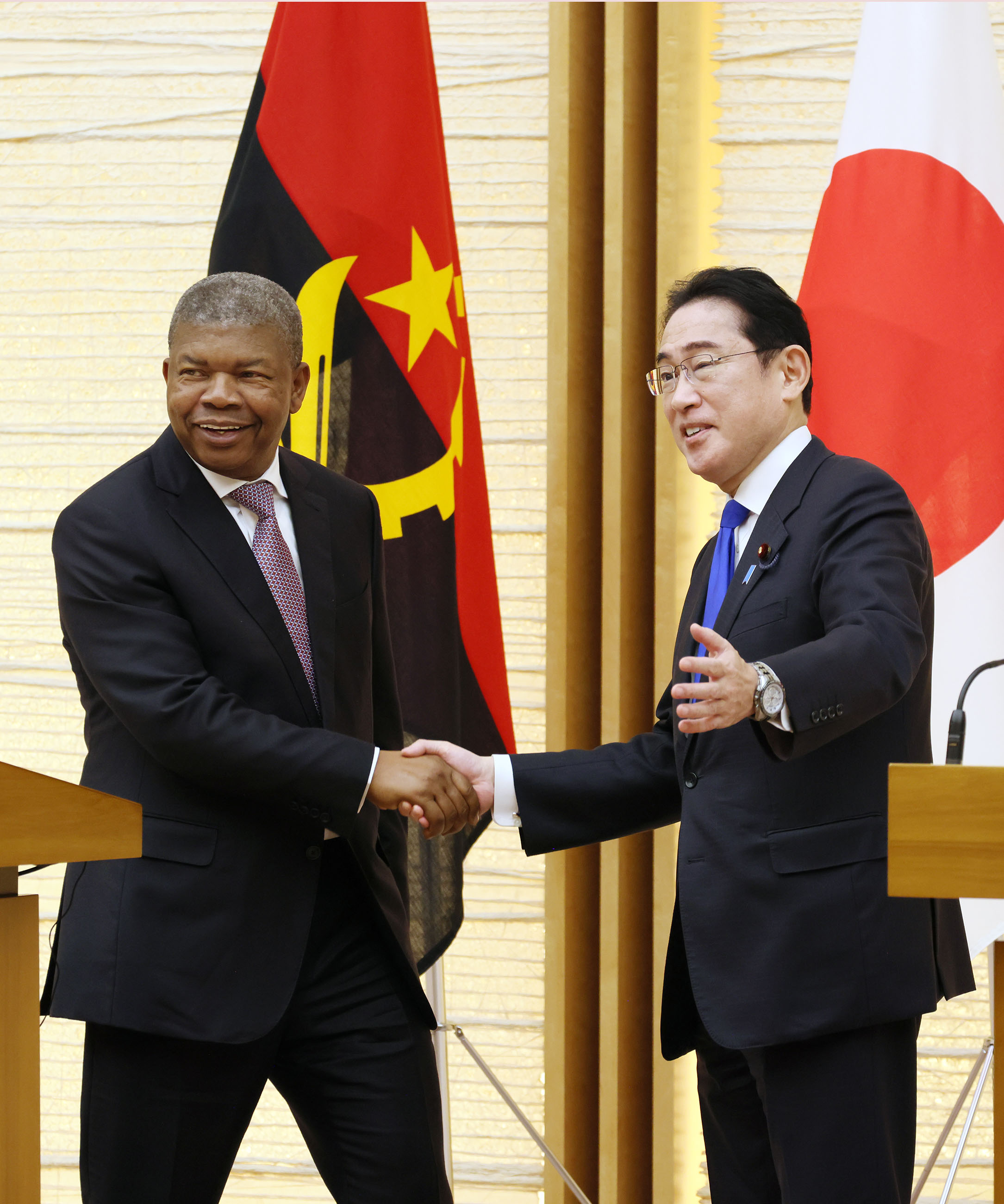 #外交・安全保障 #日・アンゴラ首脳会談 日・アンゴラ首脳会談等 更新日:令和5年3月13日 総理の一日 ツイート 日・アンゴラ首脳会談1 ロウレンソ・アンゴラ大統領を出迎える岸田総理 儀じょう隊による儀礼1 儀じょう隊による儀礼2 儀じょう隊による儀礼3 儀じょう隊による儀礼4 日・アンゴラ首脳会談2 日・アンゴラ首脳会談3 日・アンゴラ首脳会談4 日・アンゴラ首脳会談5 共同記者発表1 共同記者発表2 共同記者発表3 共同記者発表4 共同記者発表5 共同記者発表6 関連動画開く閉じる 動画が再生できない方はこちら(政府広報オンライン) 令和5年3月13日、岸田総理は、総理大臣官邸でアンゴラ共和国のジョアン・マヌエル・ゴンサルヴェス・ロウレンソ大統領と首脳会談等を行いました。 儀じょう隊による儀礼に続き、両首脳は会談を行い、その後、共同記者発表を行いました。