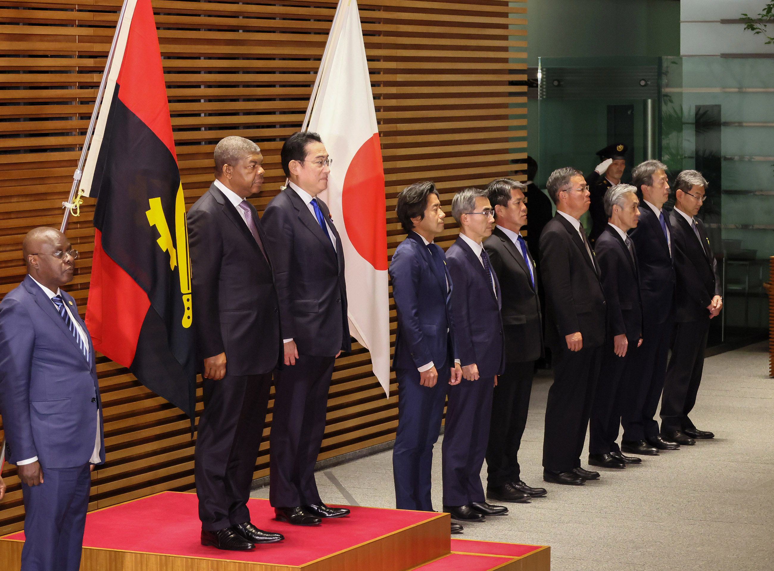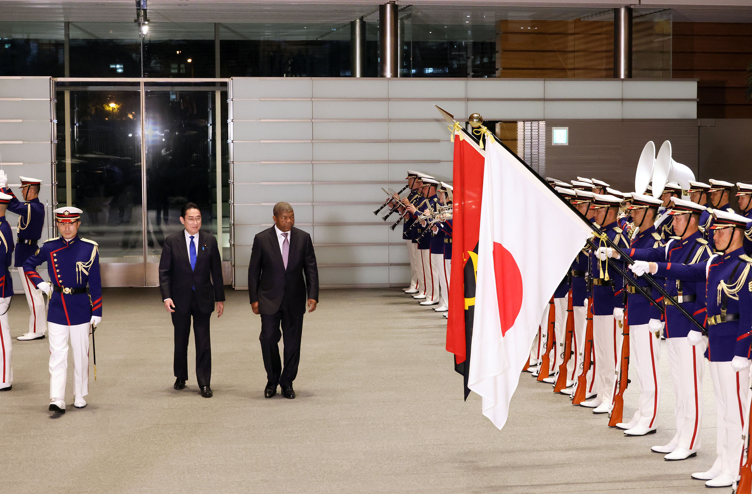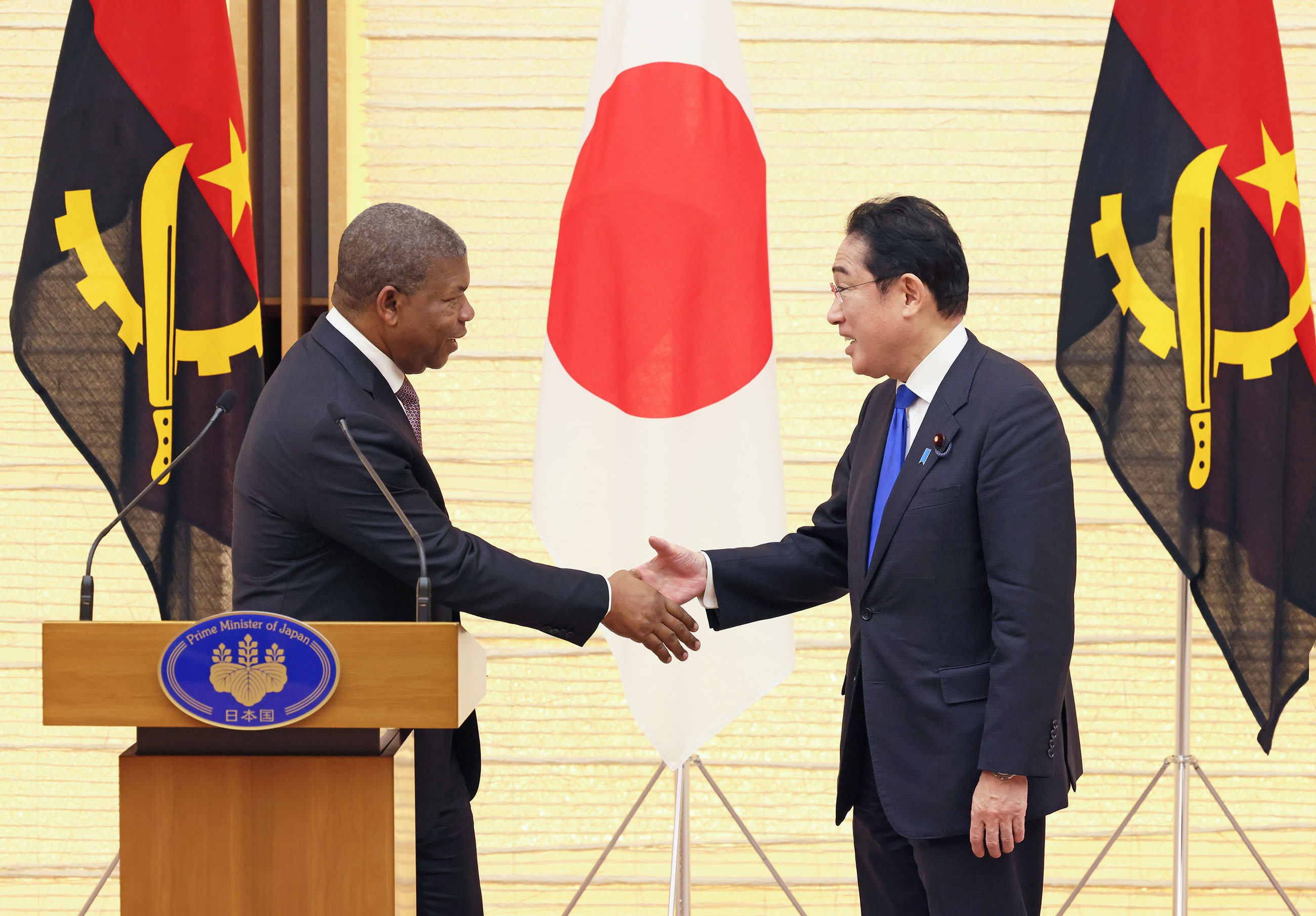 #外交・安全保障 #日・アンゴラ首脳会談 日・アンゴラ首脳会談等 更新日:令和5年3月13日 総理の一日 ツイート 日・アンゴラ首脳会談1 ロウレンソ・アンゴラ大統領を出迎える岸田総理 儀じょう隊による儀礼1 儀じょう隊による儀礼2 儀じょう隊による儀礼3 儀じょう隊による儀礼4 日・アンゴラ首脳会談2 日・アンゴラ首脳会談3 日・アンゴラ首脳会談4 日・アンゴラ首脳会談5 共同記者発表1 共同記者発表2 共同記者発表3 共同記者発表4 共同記者発表5 共同記者発表6 関連動画開く閉じる 動画が再生できない方はこちら(政府広報オンライン) 令和5年3月13日、岸田総理は、総理大臣官邸でアンゴラ共和国のジョアン・マヌエル・ゴンサルヴェス・ロウレンソ大統領と首脳会談等を行いました。 儀じょう隊による儀礼に続き、両首脳は会談を行い、その後、共同記者発表を行いました。