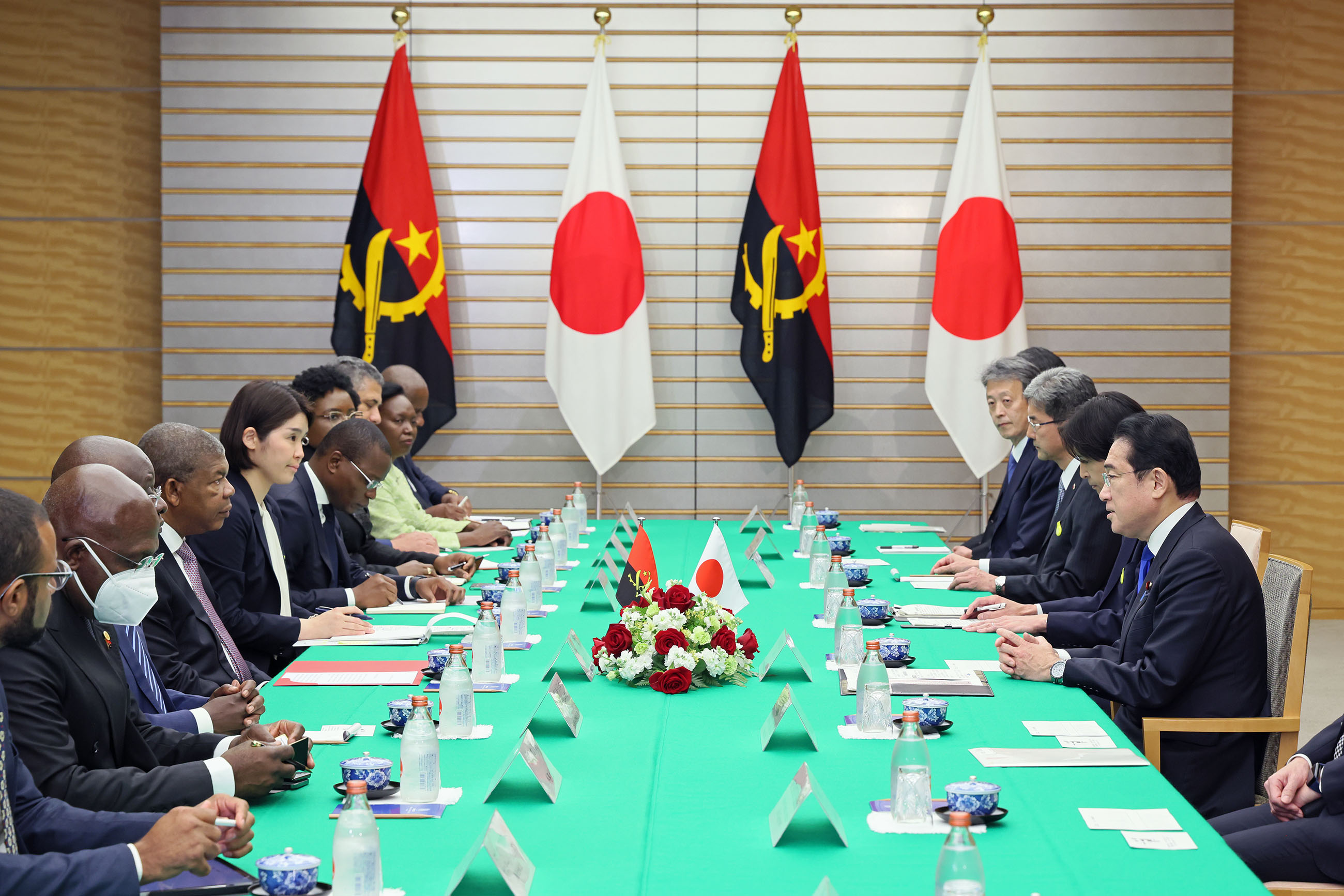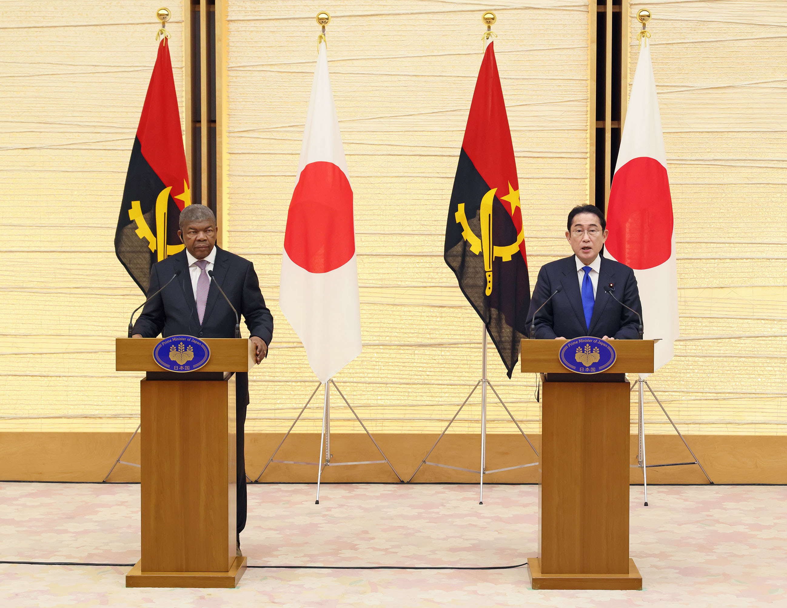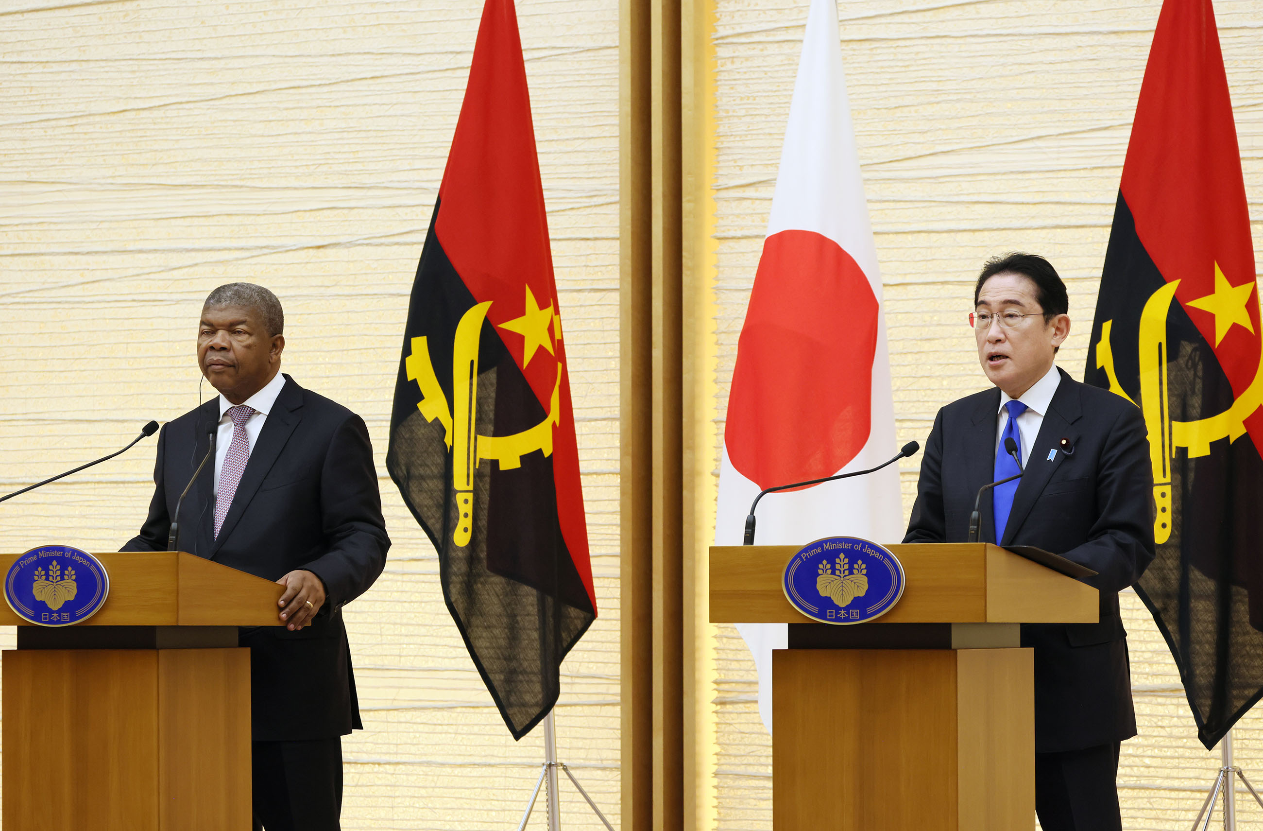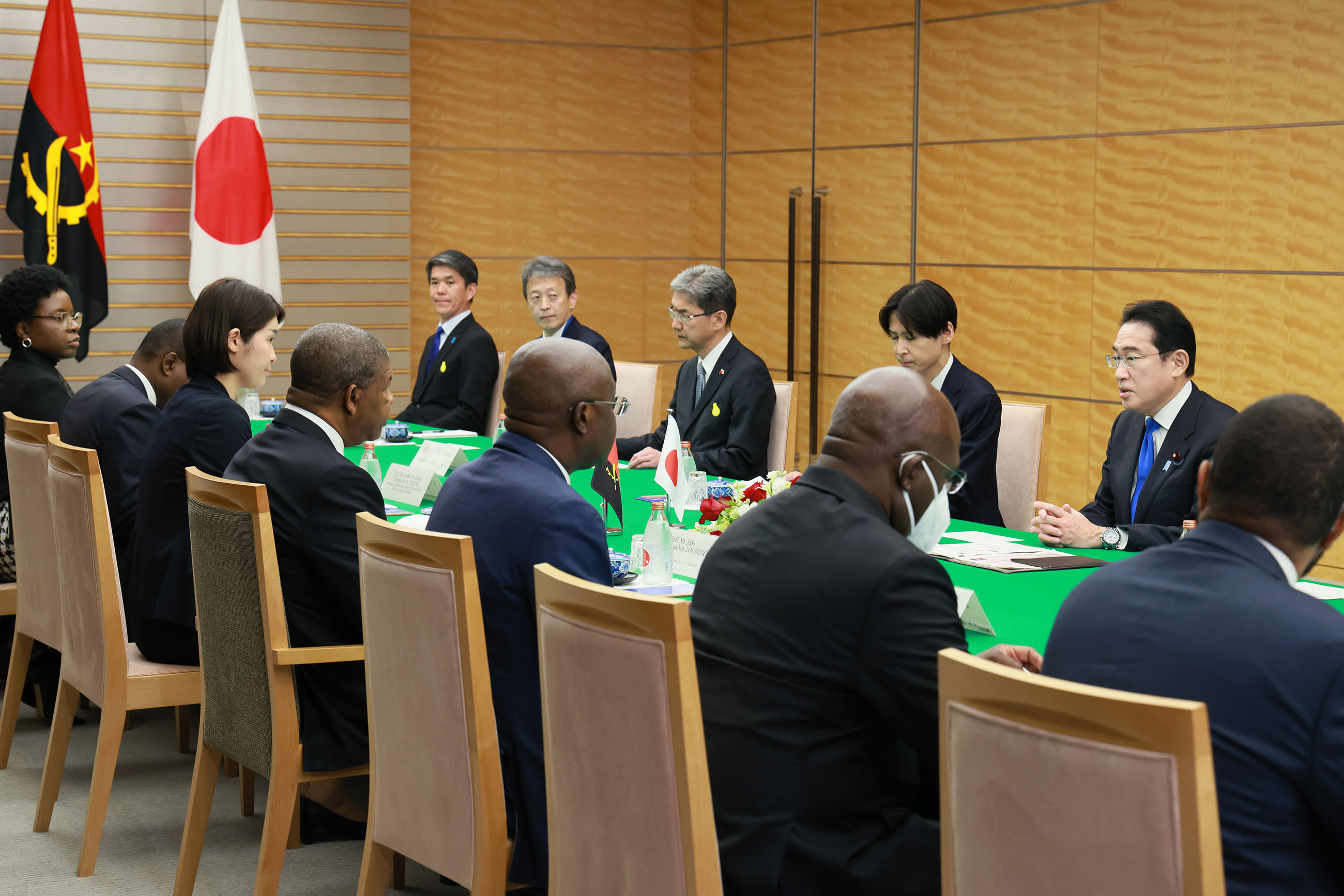 #外交・安全保障 #日・アンゴラ首脳会談 日・アンゴラ首脳会談等 更新日:令和5年3月13日 総理の一日 ツイート 日・アンゴラ首脳会談1 ロウレンソ・アンゴラ大統領を出迎える岸田総理 儀じょう隊による儀礼1 儀じょう隊による儀礼2 儀じょう隊による儀礼3 儀じょう隊による儀礼4 日・アンゴラ首脳会談2 日・アンゴラ首脳会談3 日・アンゴラ首脳会談4 日・アンゴラ首脳会談5 共同記者発表1 共同記者発表2 共同記者発表3 共同記者発表4 共同記者発表5 共同記者発表6 関連動画開く閉じる 動画が再生できない方はこちら(政府広報オンライン) 令和5年3月13日、岸田総理は、総理大臣官邸でアンゴラ共和国のジョアン・マヌエル・ゴンサルヴェス・ロウレンソ大統領と首脳会談等を行いました。 儀じょう隊による儀礼に続き、両首脳は会談を行い、その後、共同記者発表を行いました。