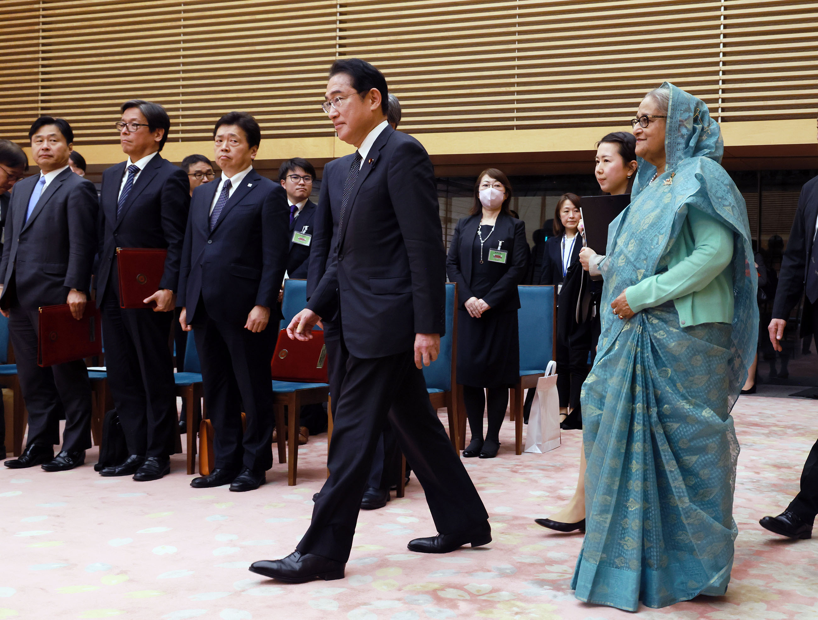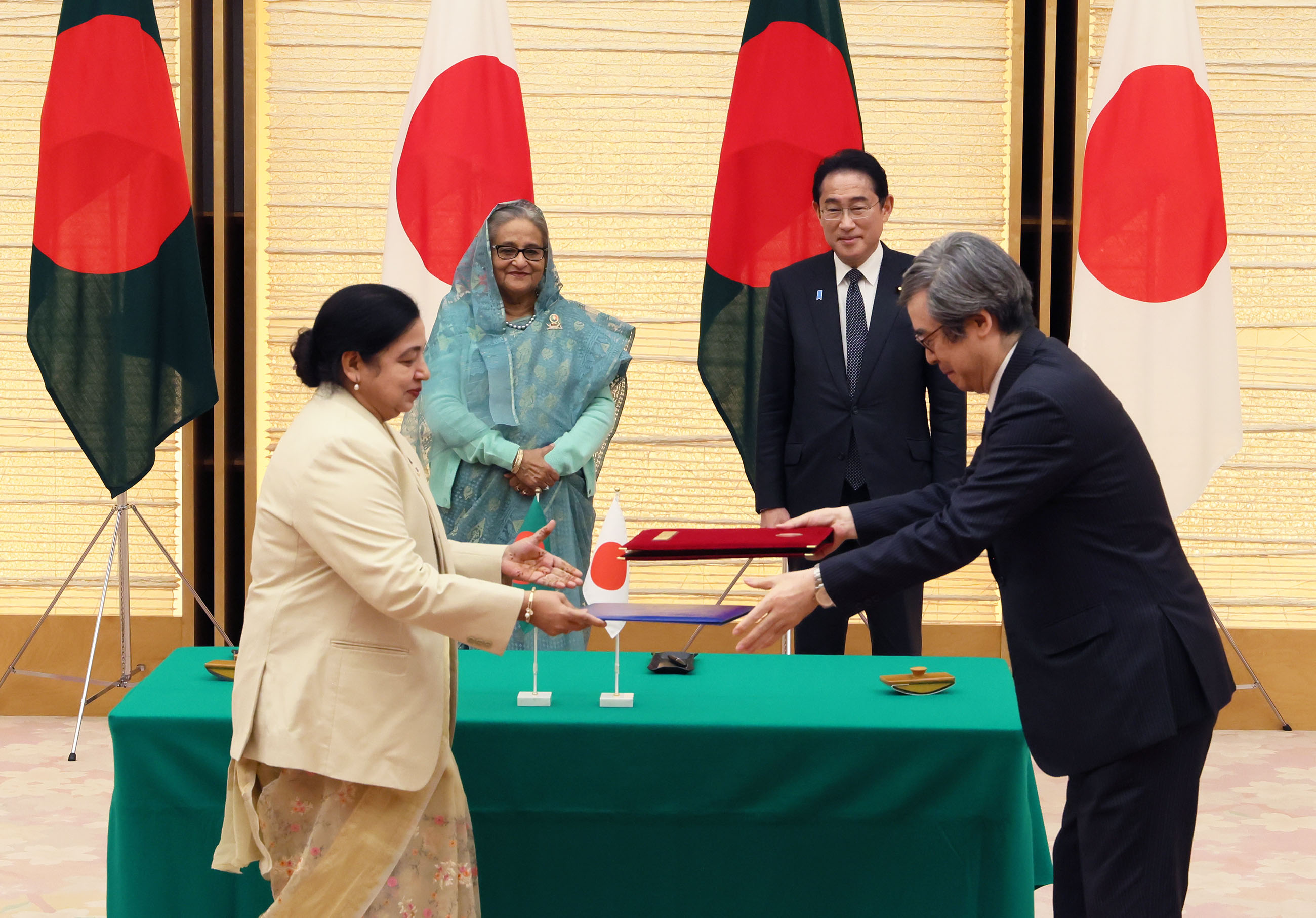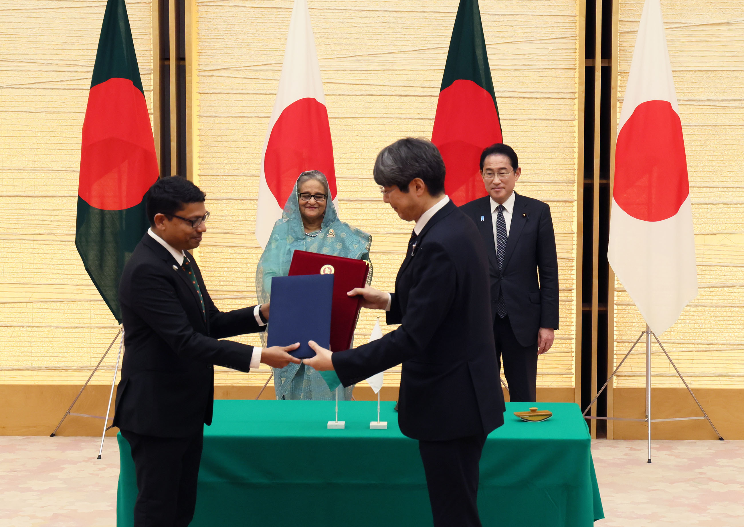 #外交・安全保障 #日・バングラデシュ首脳会談 日・バングラデシュ首脳会談等 更新日:令和5年4月26日 総理の一日 ツイート 握手を交わす両首脳 ハシナ・バングラデシュ首相を迎える岸田総理 儀じょう隊による儀礼1 儀じょう隊による儀礼2 儀じょう隊による儀礼3 日・バングラデシュ首脳会談1 日・バングラデシュ首脳会談2 日・バングラデシュ首脳会談3 日・バングラデシュ首脳会談4 文書交換式1 文書交換式2 文書交換式3 文書交換式4 文書交換式5 文書交換式6 文書交換式7 文書交換式8 文書交換式9 文書交換式10 文書交換式11 文書交換式12 文書交換式13 文書交換式14 文書交換式15 共同記者発表1 共同記者発表2 共同記者発表3 共同記者発表4 共同記者発表5 関連動画開く閉じる 動画が再生できない方はこちら(政府広報オンライン) 令和5年4月26日、岸田総理は、総理大臣官邸でバングラデシュ人民共和国のシェイク・ハシナ首相と首脳会談等を行いました。 儀じょう隊による儀礼に続き、両首脳は会談を行い、その後、文書交換式及び共同記者発表を行いました。