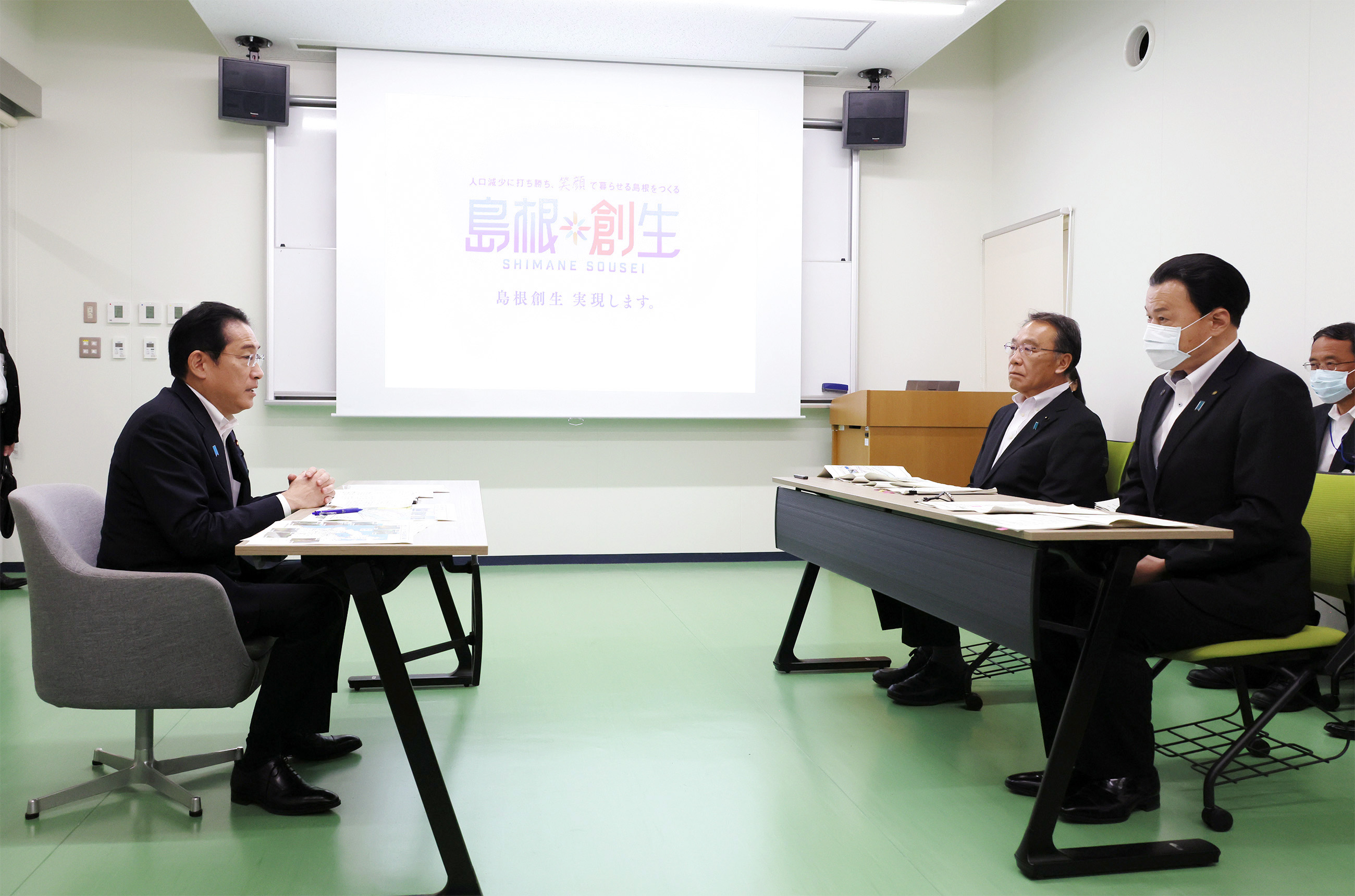 #新しい資本主義 #分配戦略 #人への投資 #こども・子育て政策 鳥取県及び島根県訪問 更新日:令和5年7月31日 総理の一日 ツイート 歌の練習の見学をする岸田総理1 施策説明を受ける岸田総理1 施策説明を受ける岸田総理2 保育施設を視察する岸田総理1 保育施設を視察する岸田総理2 歌の練習の見学をする岸田総理2 記念撮影 こども政策対話で参加者と対話する岸田総理1 こども政策対話で参加者と対話する岸田総理2 こども政策対話で参加者と対話する岸田総理3 こども政策対話で参加者と対話する岸田総理4 こども政策対話で参加者と対話する岸田総理5 こども政策対話で参加者と対話する岸田総理6 こども政策対話で参加者と対話する岸田総理7 こども政策対話で参加者と対話する岸田総理8 記念撮影 豪雨被害に関する意見交換1 豪雨被害に関する意見交換2 次世代たたら協創センターを見学する岸田総理1 次世代たたら協創センターを見学する岸田総理2 次世代たたら協創センターを見学する岸田総理3 アントレプレナーシップ教育授業を見学する岸田総理1 アントレプレナーシップ教育授業を見学する岸田総理2 アントレプレナーシップ教育授業を見学する岸田総理3 関連動画開く閉じる 動画が再生できない方はこちら(政府広報オンライン) 令和5年7月31日、岸田総理は、鳥取県及び島根県を訪問しました。 総理は、鳥取県日吉津村のミライトひえづで施策説明を受けた後、保育施設の視察、歌の練習の見学を行い、続いて、こども政策対話を行いました。 その後、島根県松江市で豪雨被害に関する意見交換を行い、続いて、島根大学の次世代たたら協創センター及びアントレプレナーシップ教育授業の見学を行い、最後に本日の訪問等について会見を行いました。