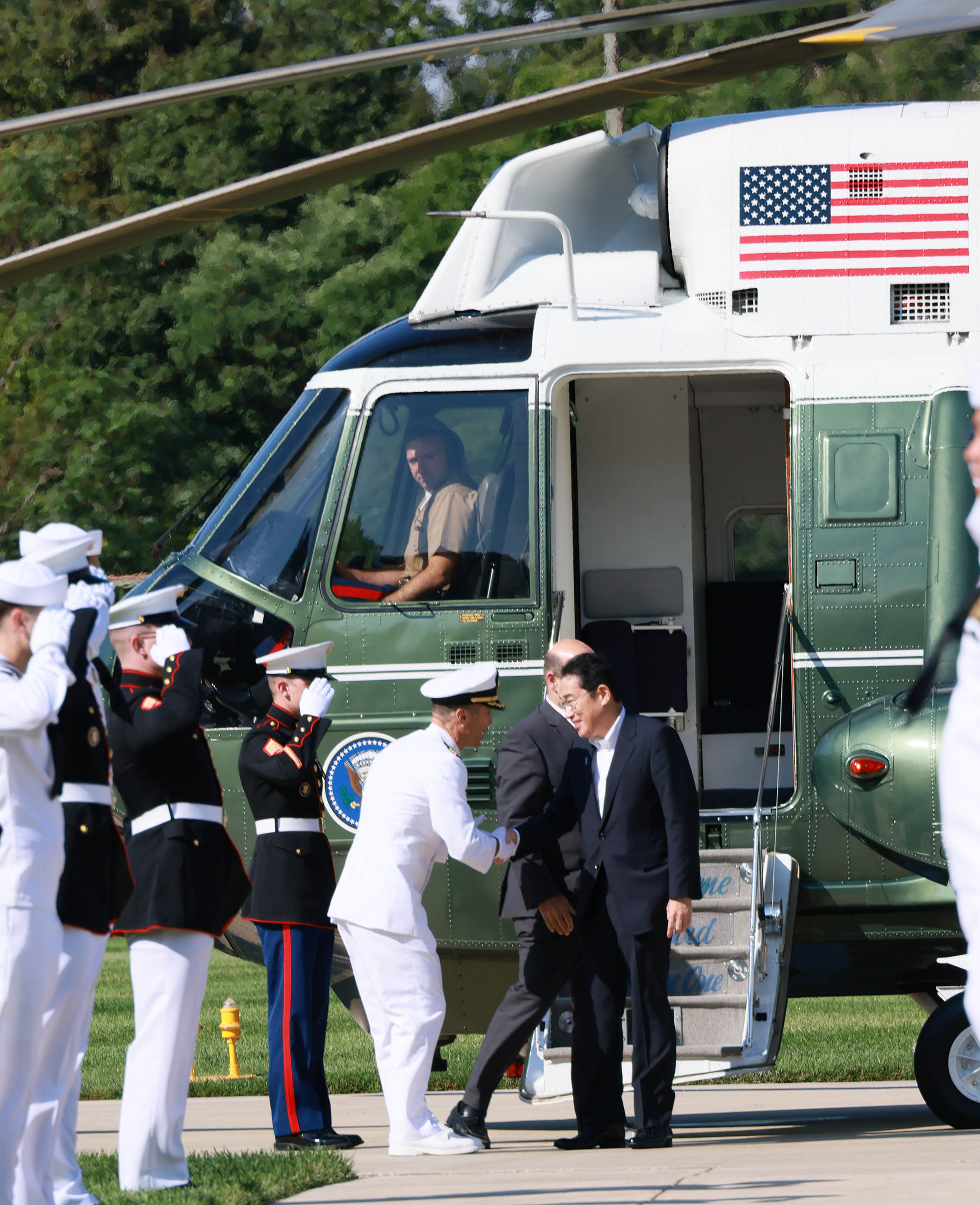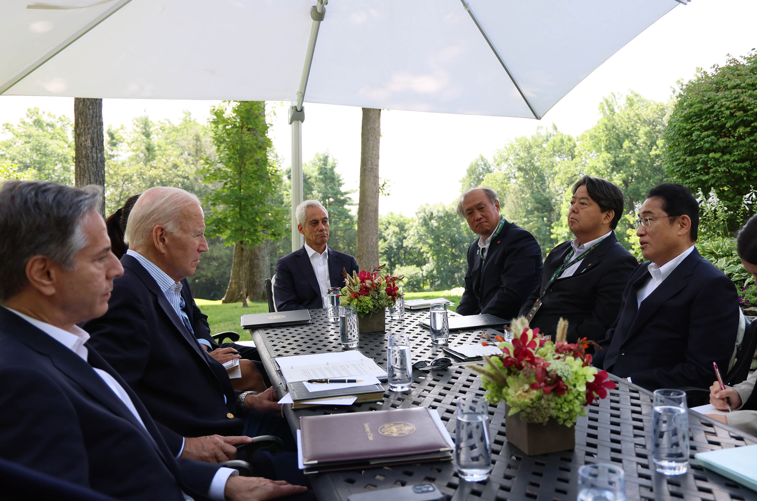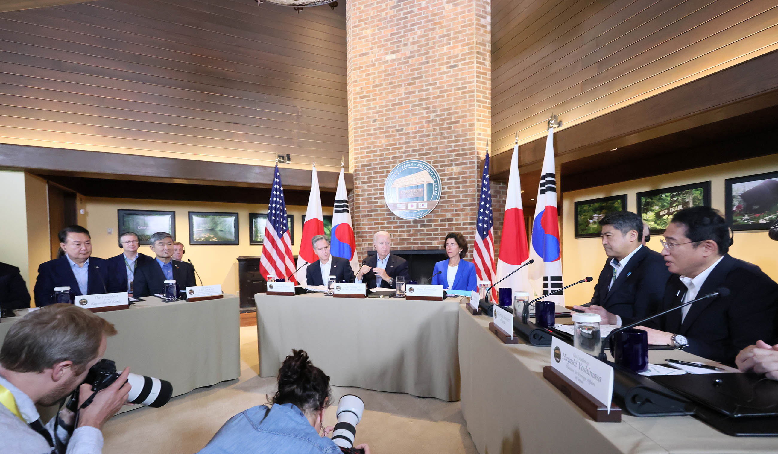 #外交・安全保障 #日米韓首脳会談 #日米首脳会談 #日韓首脳会談 米国訪問 更新日:令和5年8月18日 総理の一日 ツイート 日米韓首脳会合1 ワシントンD.C.に到着する岸田総理1 ワシントンD.C.に到着する岸田総理2 ワシントンD.C.に到着する岸田総理3 キャンプ・デービッドに到着する岸田総理1 キャンプ・デービッドに到着する岸田総理2 キャンプ・デービッドに到着する岸田総理3 日米首脳会談1 日米首脳会談2 日米首脳会談3 日米韓首脳会合2 日米韓首脳会合3 日米韓首脳会合4 日韓首脳会談1 日韓首脳会談2 日米韓共同記者会見に臨む岸田総理1 日米韓共同記者会見に臨む岸田総理2 日米韓共同記者会見に臨む岸田総理3 日米韓共同記者会見1 日米韓共同記者会見2 日米韓共同記者会見3 日米韓共同記者会見4 日米韓共同記者会見5 関連動画開く閉じる 動画が再生できない方はこちら(政府広報オンライン) 令和5年8月17日(現地時間)、岸田総理は、アメリカ合衆国のメリーランド州を訪問しました。 翌18日(現地時間)、総理は、同州のキャンプ・デービッドでアメリカ合衆国のジョセフ・バイデン大統領と会談を行った後、大韓民国の尹錫悦(ユン・ソンニョル)大統領も加わり、日米韓首脳会合を行いました。その後、尹大統領と会談を行い、日米韓共同記者会見を行いました。最後に米国訪問等についての会見を行いました。