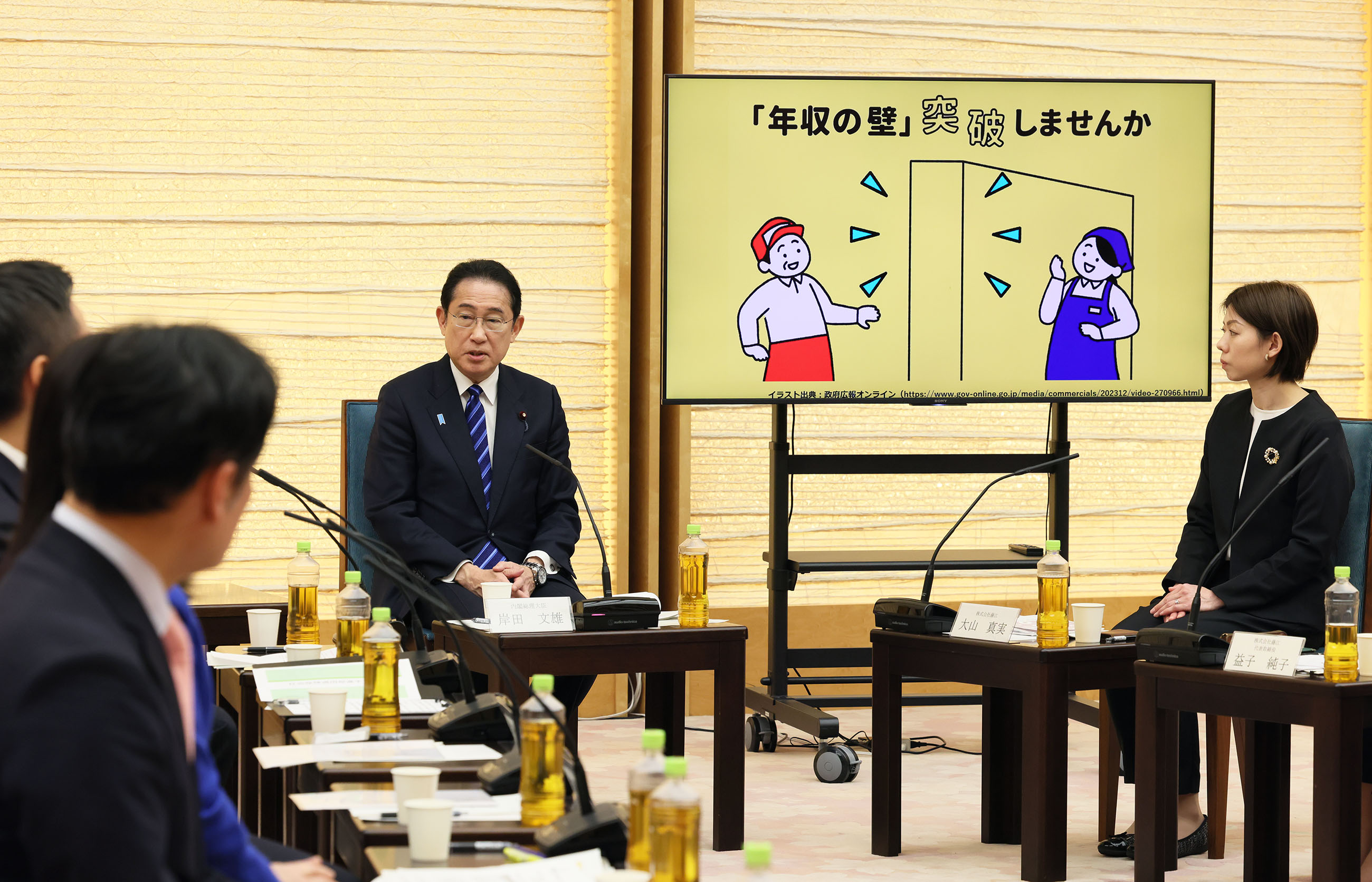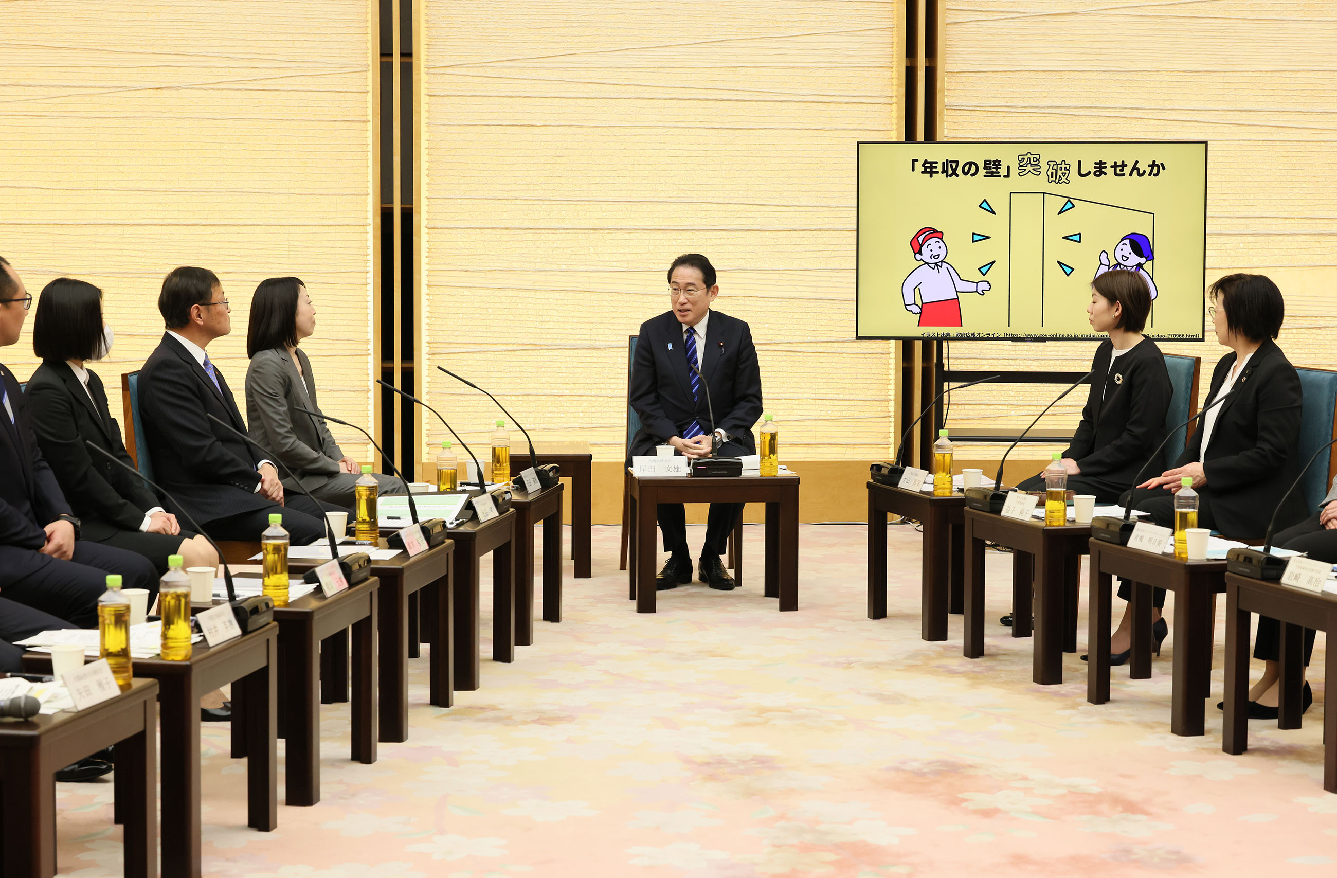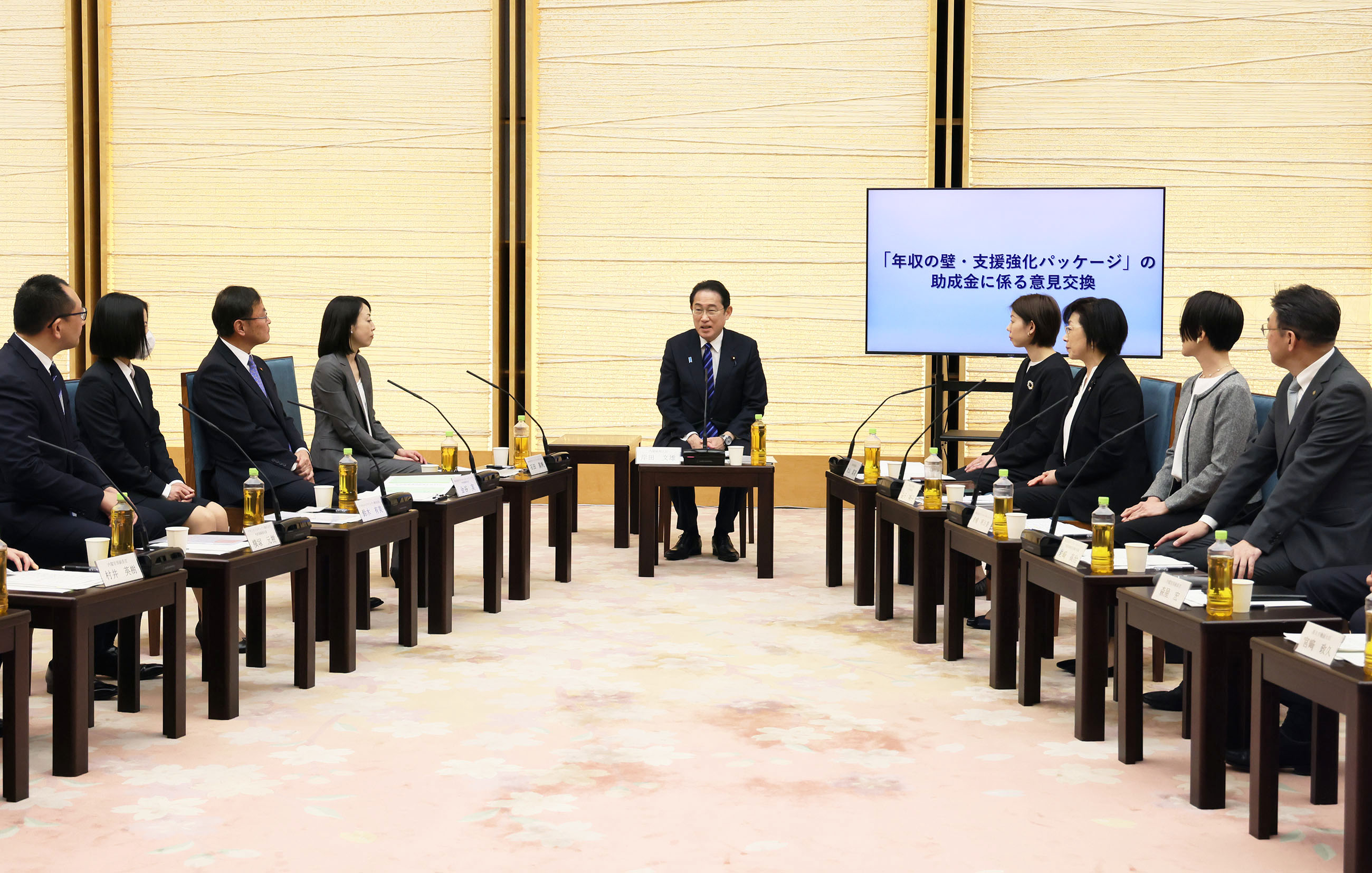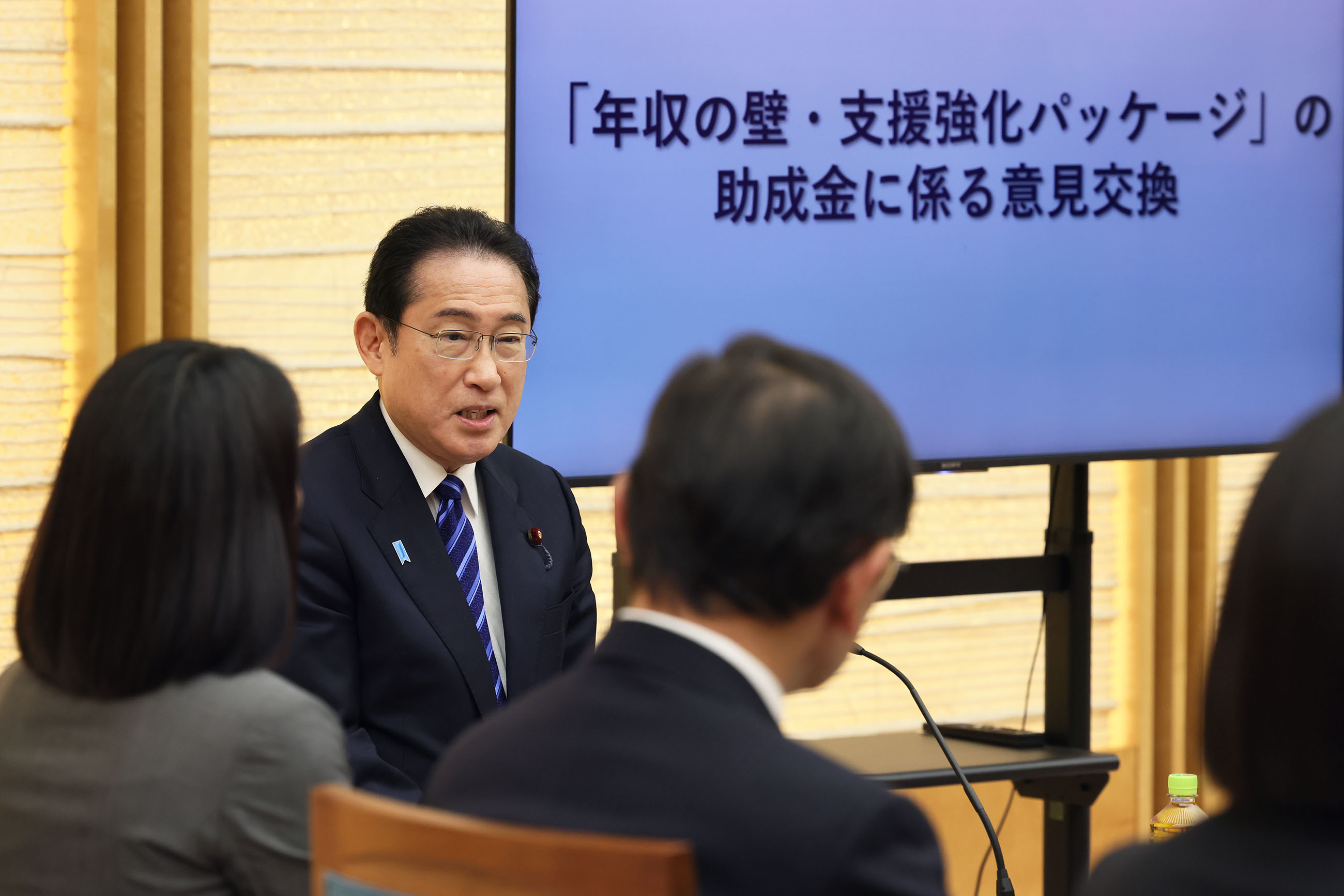 #経済対策 #賃上げ 「年収の壁・支援強化パッケージ」の助成金に係る意見交換 更新日:令和6年4月3日 総理の一日 ツイート 意見交換する岸田総理1 意見交換する岸田総理2 意見交換する岸田総理3 意見交換する岸田総理4 意見交換する岸田総理5 関連動画開く閉じる 動画が再生できない方はこちら(政府広報オンライン) 動画ファイルはこちら 令和6年4月3日、岸田総理は、総理大臣官邸で「年収の壁・支援強化パッケージ」の助成金に係る意見交換を行いました。