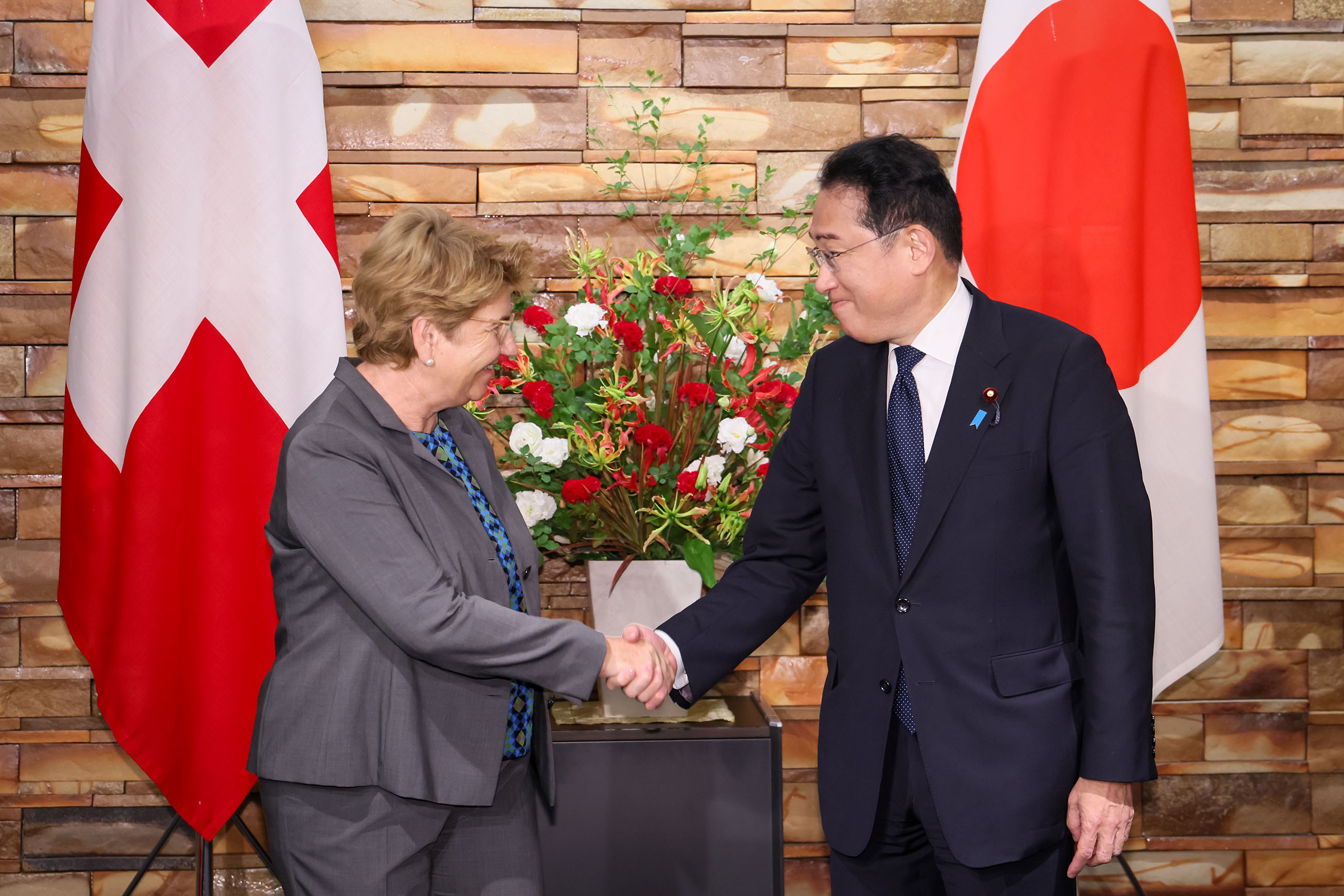 #外交・安全保障 #日・スイス首脳会談 日・スイス首脳会談 更新日:令和6年8月7日 総理の一日 ツイート 日・スイス首脳会談1 日・スイス首脳会談2 日・スイス首脳会談3 関連動画開く閉じる 動画が再生できない方はこちら(政府広報オンライン) 令和6年8月7日、岸田総理は、総理大臣官邸でスイス連邦のヴィオラ・アムヘルト大統領兼国防・市民防衛・スポーツ大臣と首脳会談を行いました。