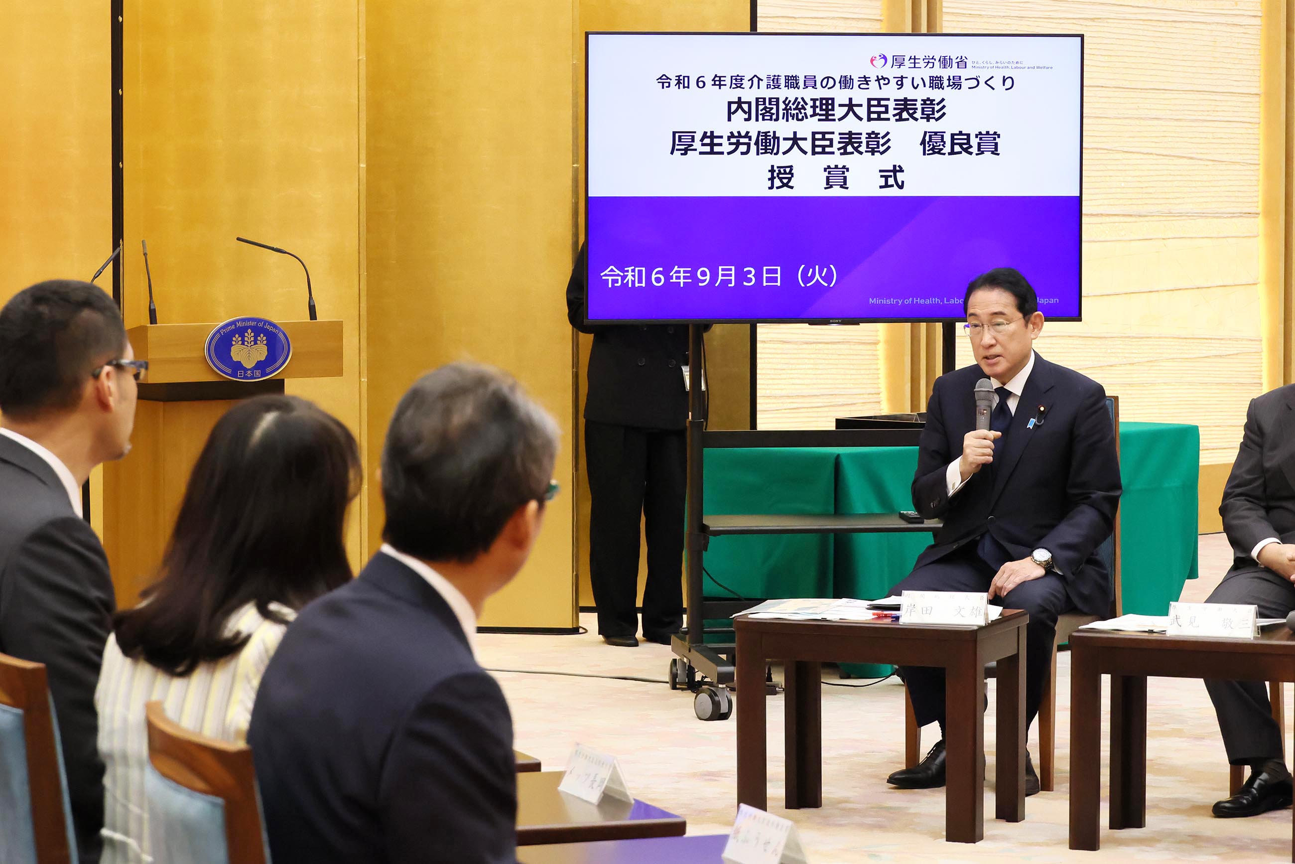 令和6年9月3日、岸田総理は、総理大臣官邸で令和6年度介護職員の働きやすい職場環境づくり内閣総理大臣表彰・厚生労働大臣表彰に出席しました。