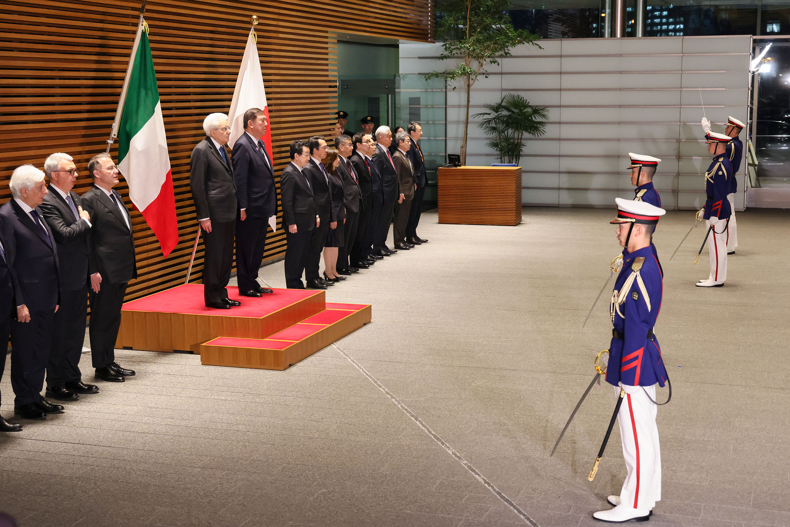 マッタレッラ・イタリア大統領との会談等 更新日:令和7年3月5日 総理の一日 ツイート マッタレッラ大統領と会談する石破総理1 マッタレッラ大統領を出迎える石破総理 儀じょう隊による栄誉礼及び儀じょう1 儀じょう隊による栄誉礼及び儀じょう2 儀じょう隊による栄誉礼及び儀じょう3 儀じょう隊による栄誉礼及び儀じょう4 マッタレッラ大統領と会談する石破総理2 マッタレッラ大統領と会談する石破総理3 マッタレッラ大統領と会談する石破総理4 共同記者発表1 共同記者発表2 共同記者発表3 関連動画開く閉じる 動画が再生できない方はこちら(政府広報オンライン) 動画ファイルはこちら 令和7年3月5日、石破総理は、総理大臣官邸でイタリア共和国のセルジョ・マッタレッラ大統領と会談を行いました。 儀じょう隊による栄誉礼及び儀じょうに続き、石破総理はマッタレッラ大統領と会談を行い、続いて共同記者発表を行いました。その後、総理主催のワーキング・ディナーを行いました。