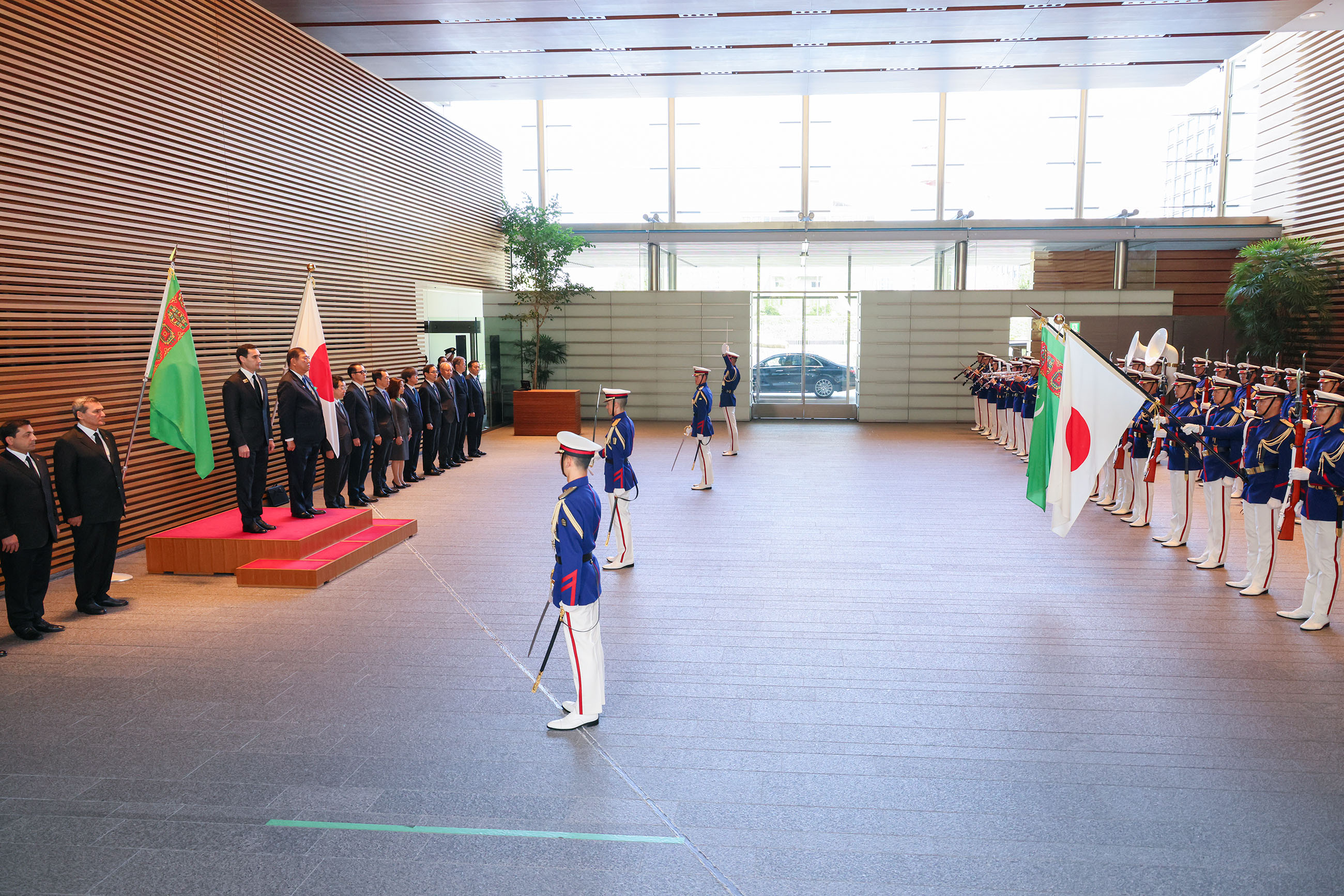 日・トルクメニスタン首脳会談等 更新日:令和7年4月15日 総理の一日 ツイート 日・トルクメニスタン首脳会談1 ベルディムハメドフ大統領を出迎える石破総理1 ベルディムハメドフ大統領を出迎える石破総理2 儀じょう隊による栄誉礼及び儀じょう1 儀じょう隊による栄誉礼及び儀じょう2 儀じょう隊による栄誉礼及び儀じょう3 日・トルクメニスタン首脳会談2 日・トルクメニスタン首脳会談3 日・トルクメニスタン首脳会談4 日・トルクメニスタン首脳会談5 日・トルクメニスタン首脳会談6 関連動画開く閉じる 動画が再生できない方はこちら(政府広報オンライン) 動画ファイルはこちら 令和7年4月15日、石破総理は、総理大臣官邸でトルクメニスタンのセルダル・ベルディムハメドフ大統領と首脳会談等を行いました。 儀じょう隊による栄誉礼及び儀じょうに続き、両首脳は共同プレスリリース及び会談を行い、最後に総理主催のワーキング・ランチを行いました。