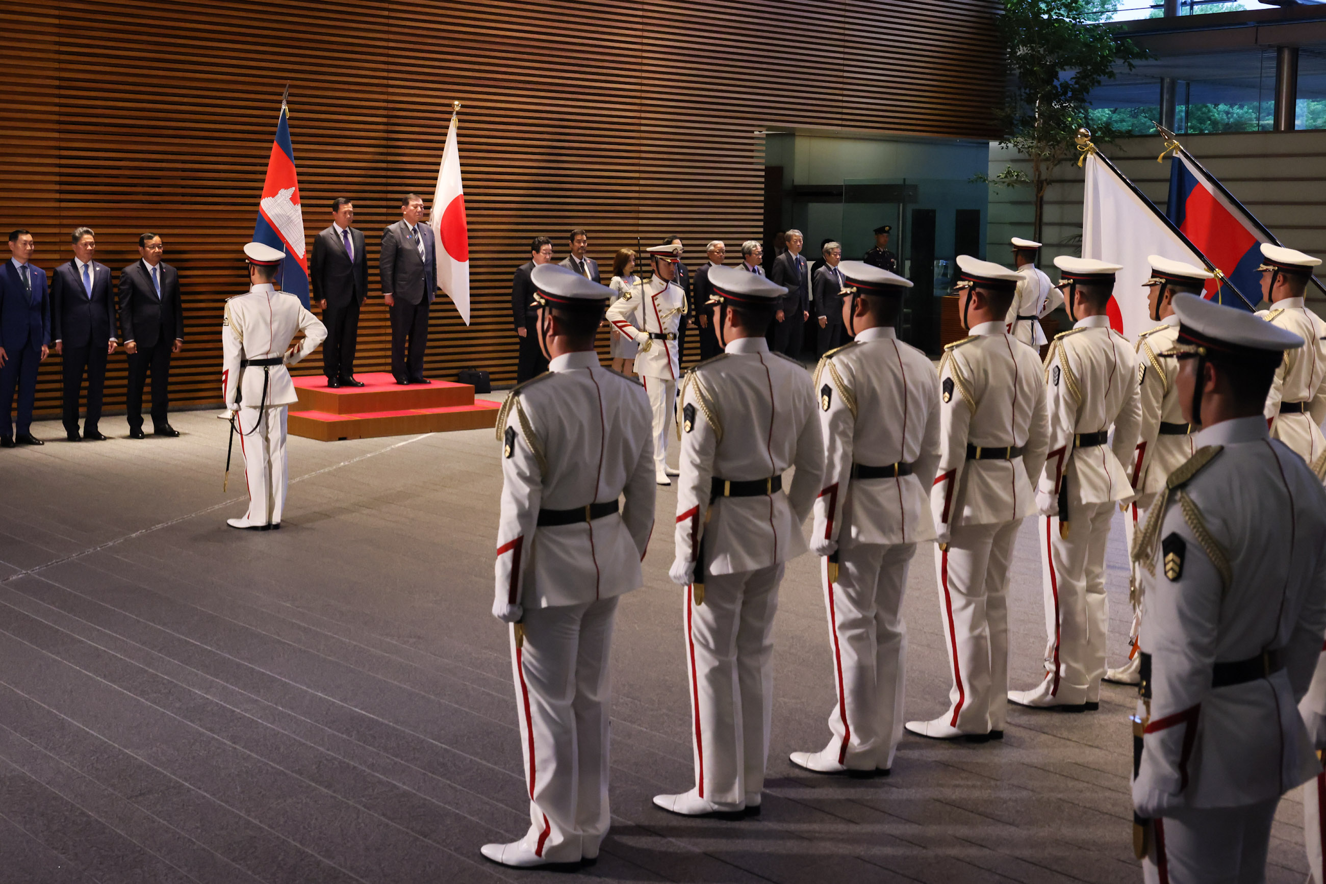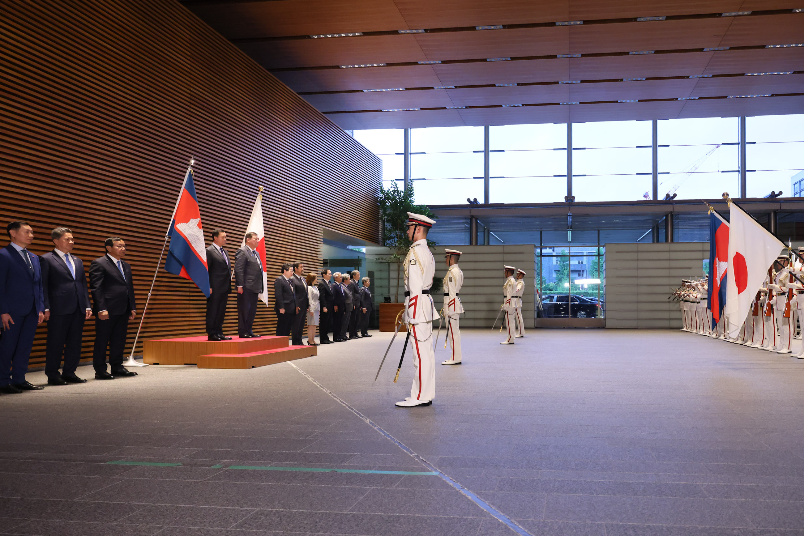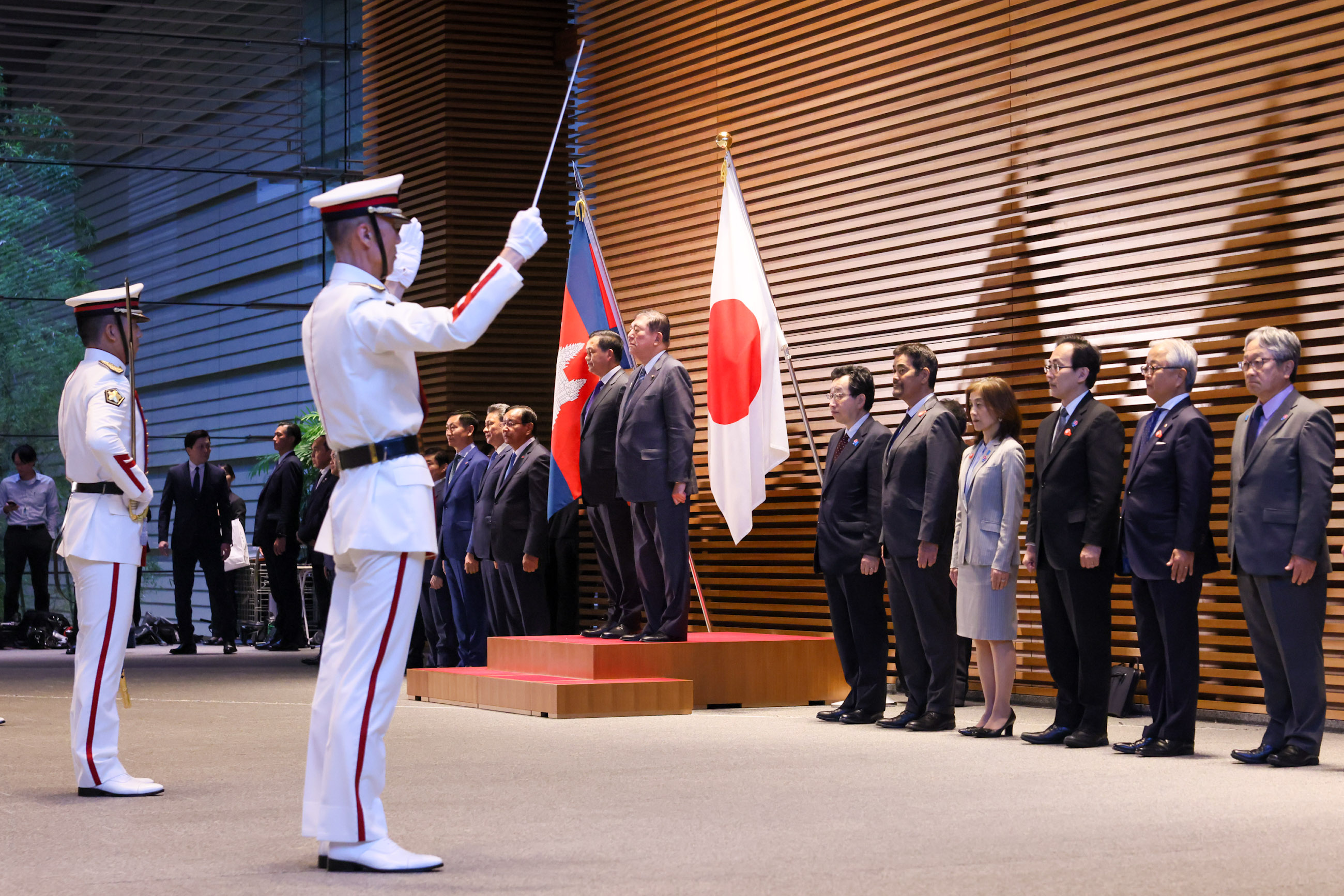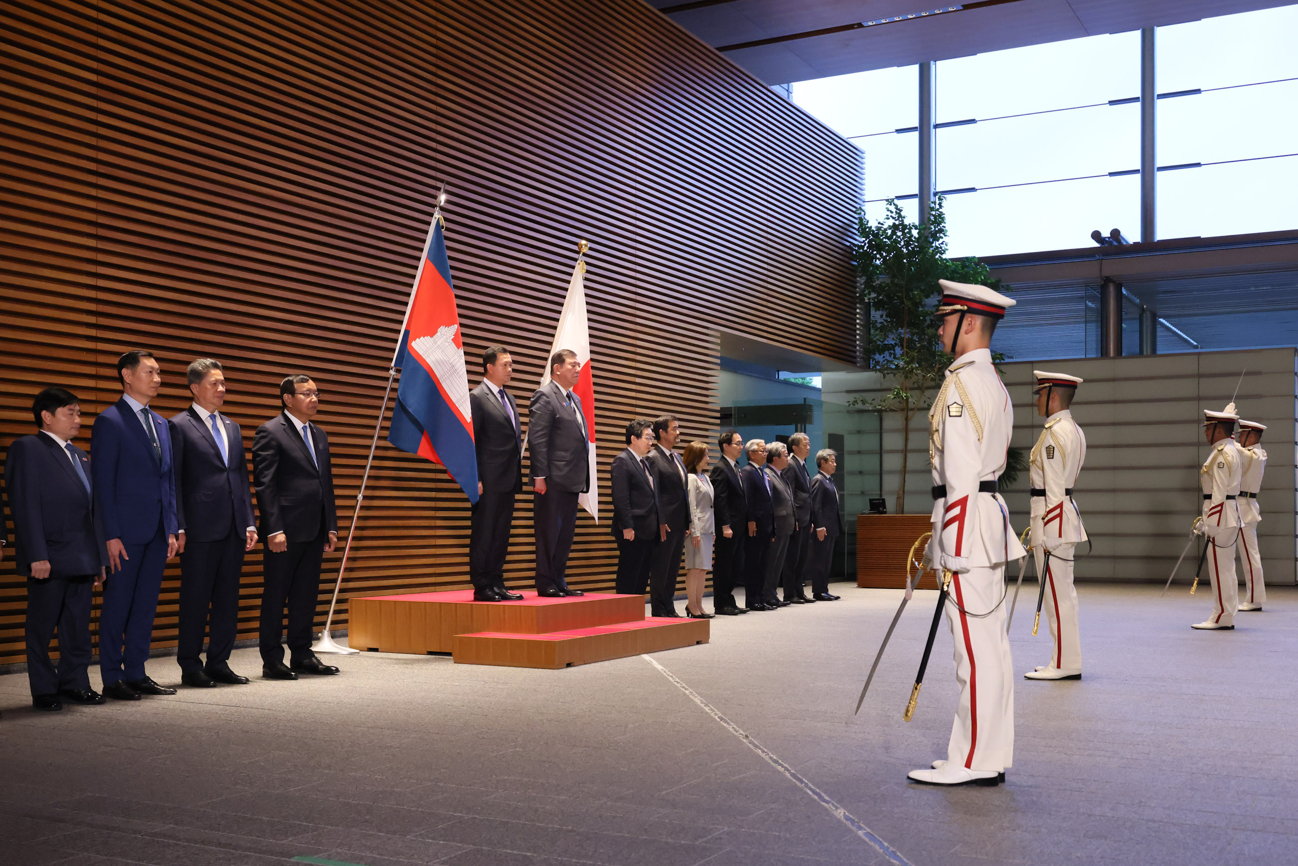 日・カンボジア首脳会談 更新日:令和7年5月30日 総理の一日 ツイート 日・カンボジア首脳会談1 フン・マネット首相を出迎える石破総理 儀じょう隊による栄誉礼及び儀じょう1 儀じょう隊による栄誉礼及び儀じょう2 儀じょう隊による栄誉礼及び儀じょう3 儀じょう隊による栄誉礼及び儀じょう4 儀じょう隊による栄誉礼及び儀じょう5 日・カンボジア首脳会談2 日・カンボジア首脳会談3 日・カンボジア首脳会談4 日・カンボジア首脳会談5 共同記者発表に臨む両首脳 共同記者発表1 共同記者発表2 共同記者発表3 共同記者発表4 共同記者発表5 共同記者発表6 共同記者発表7 関連動画開く閉じる 動画が再生できない方はこちら(政府広報オンライン) 令和7年5月30日、石破総理は、総理大臣官邸でカンボジア王国のフン・マネット首相と首脳会談を行いました。 儀じょう隊による栄誉礼及び儀じょうに続き、両首脳は会談を行い、その後、共同記者発表を行いました。最後にワーキング・ディナーを行いました。