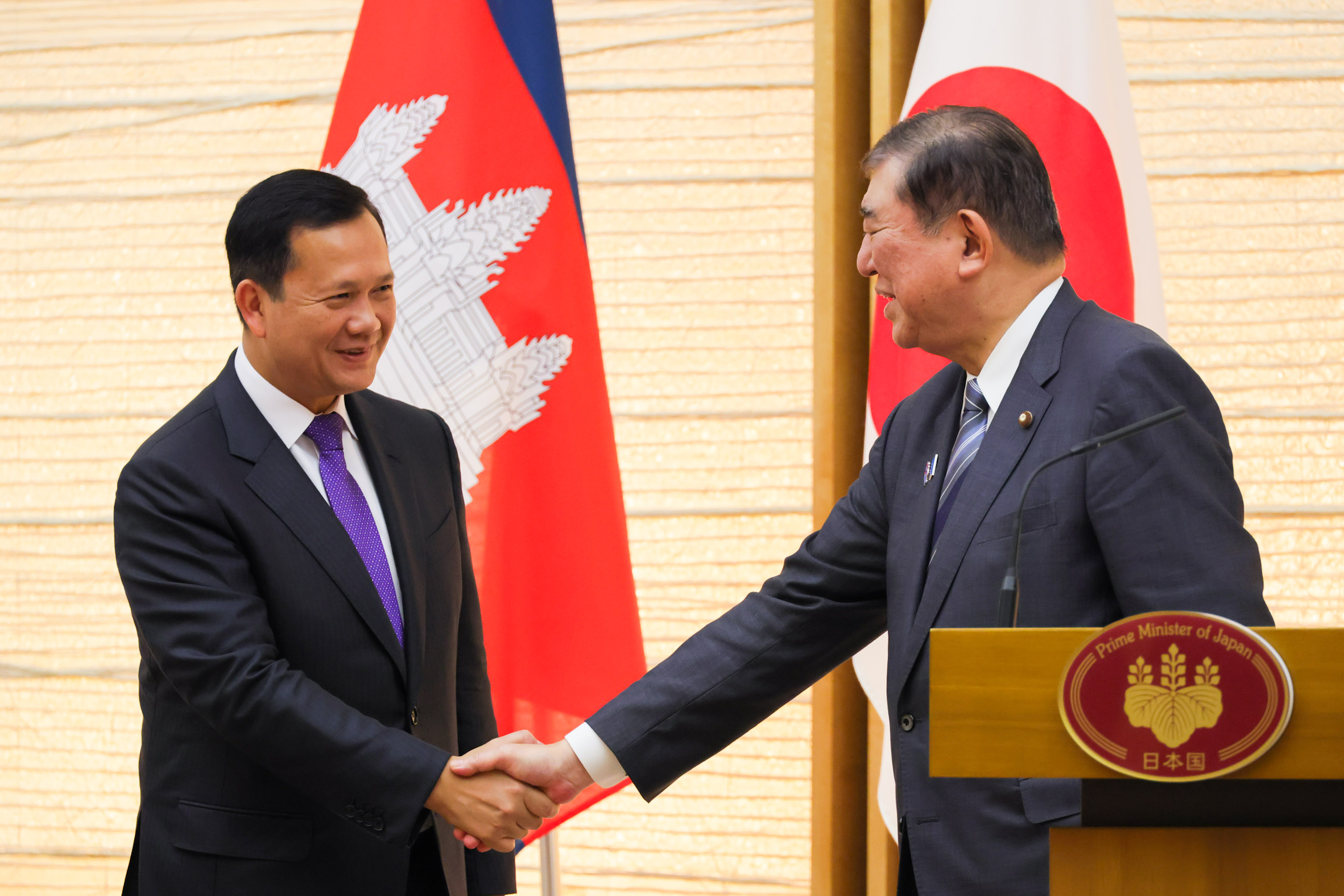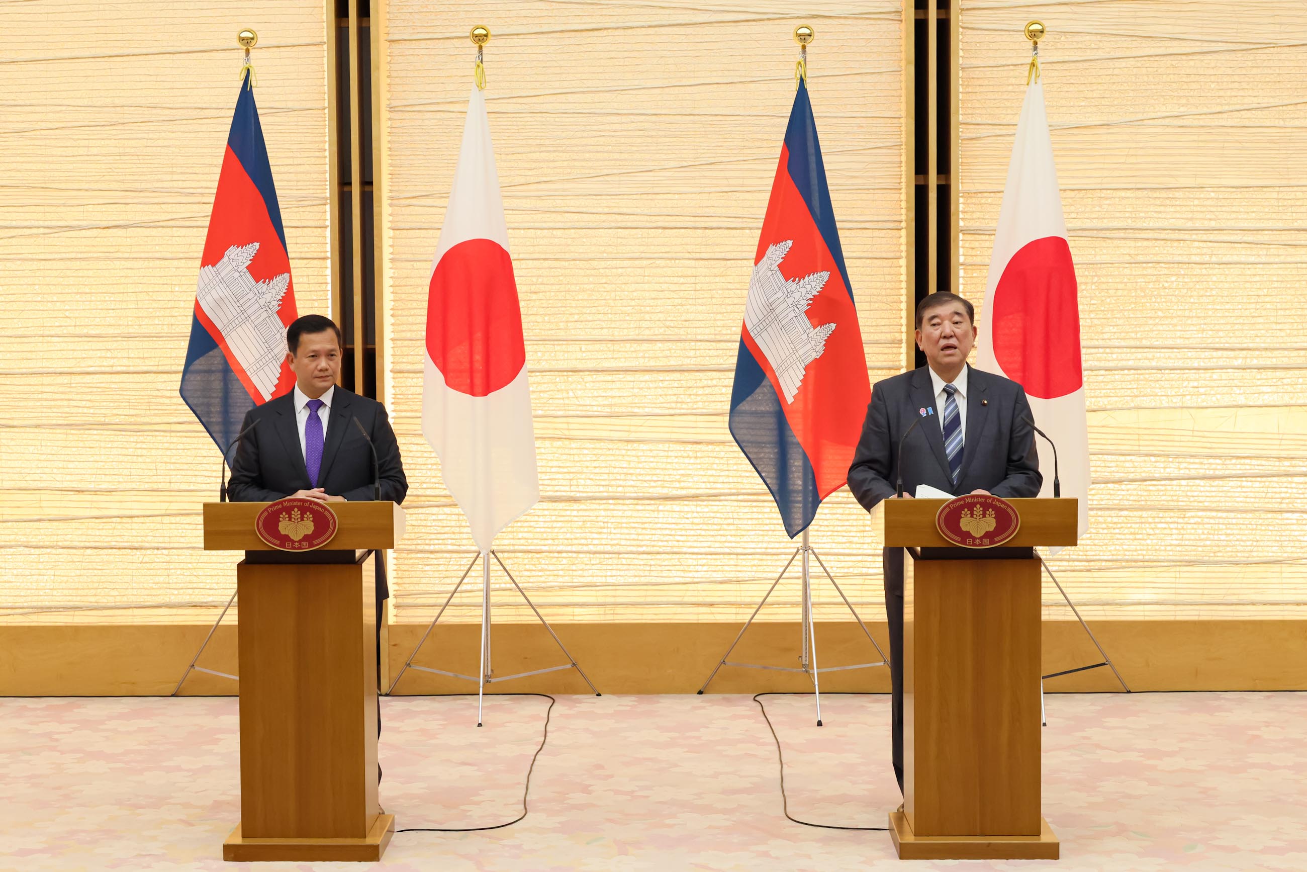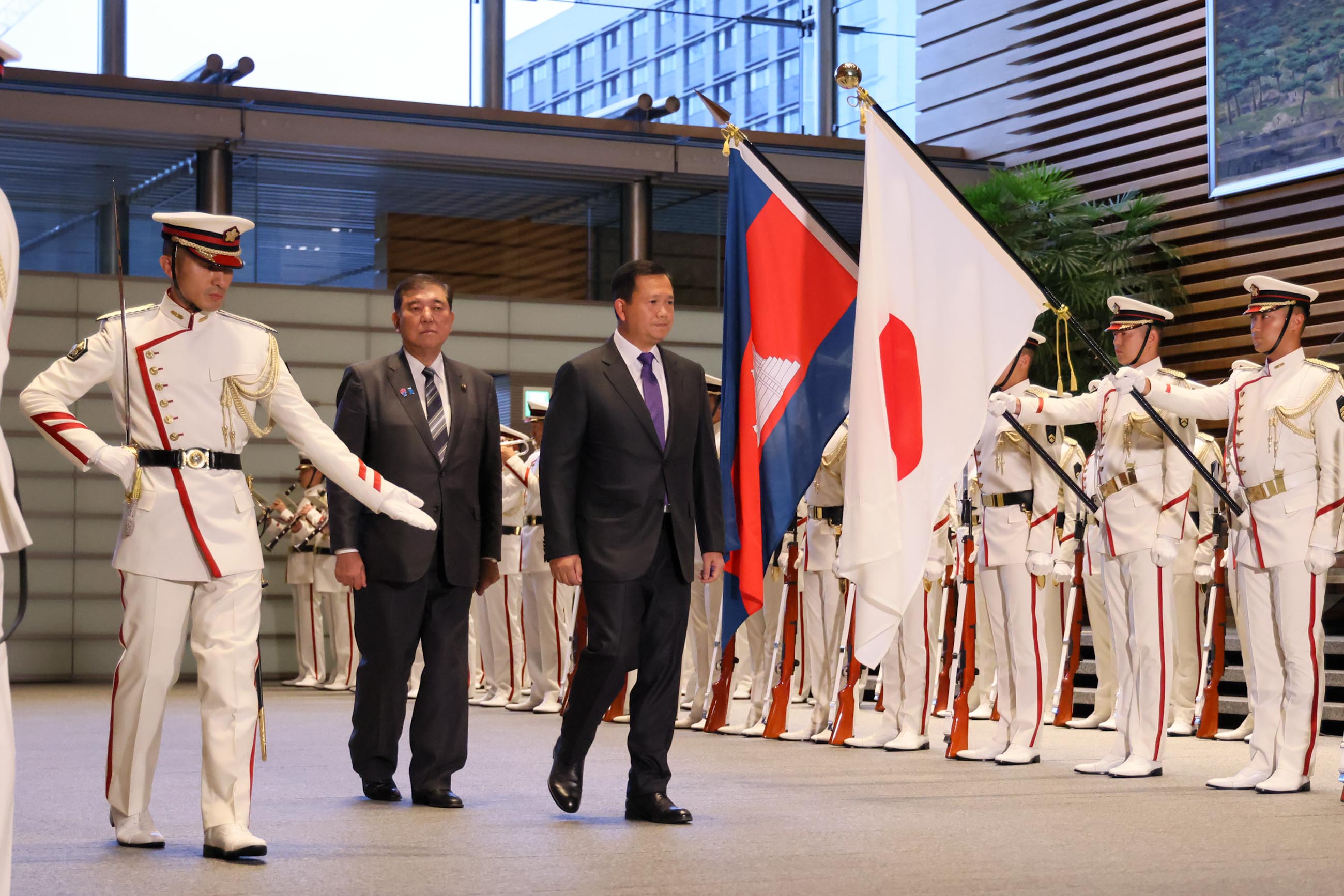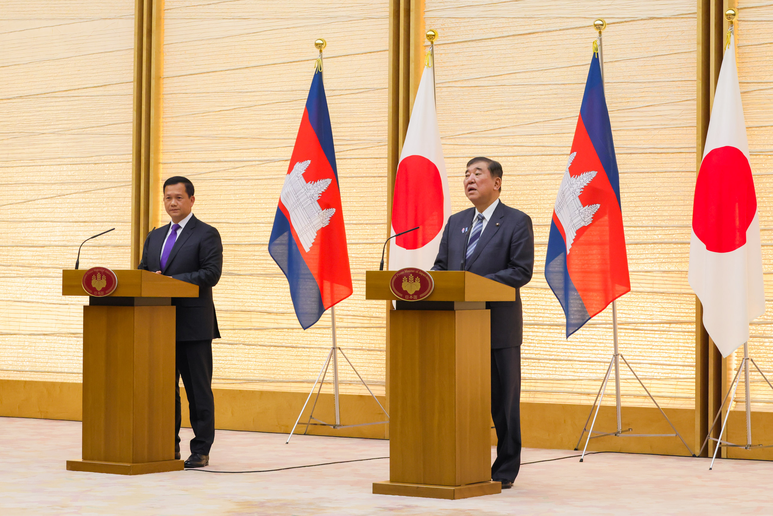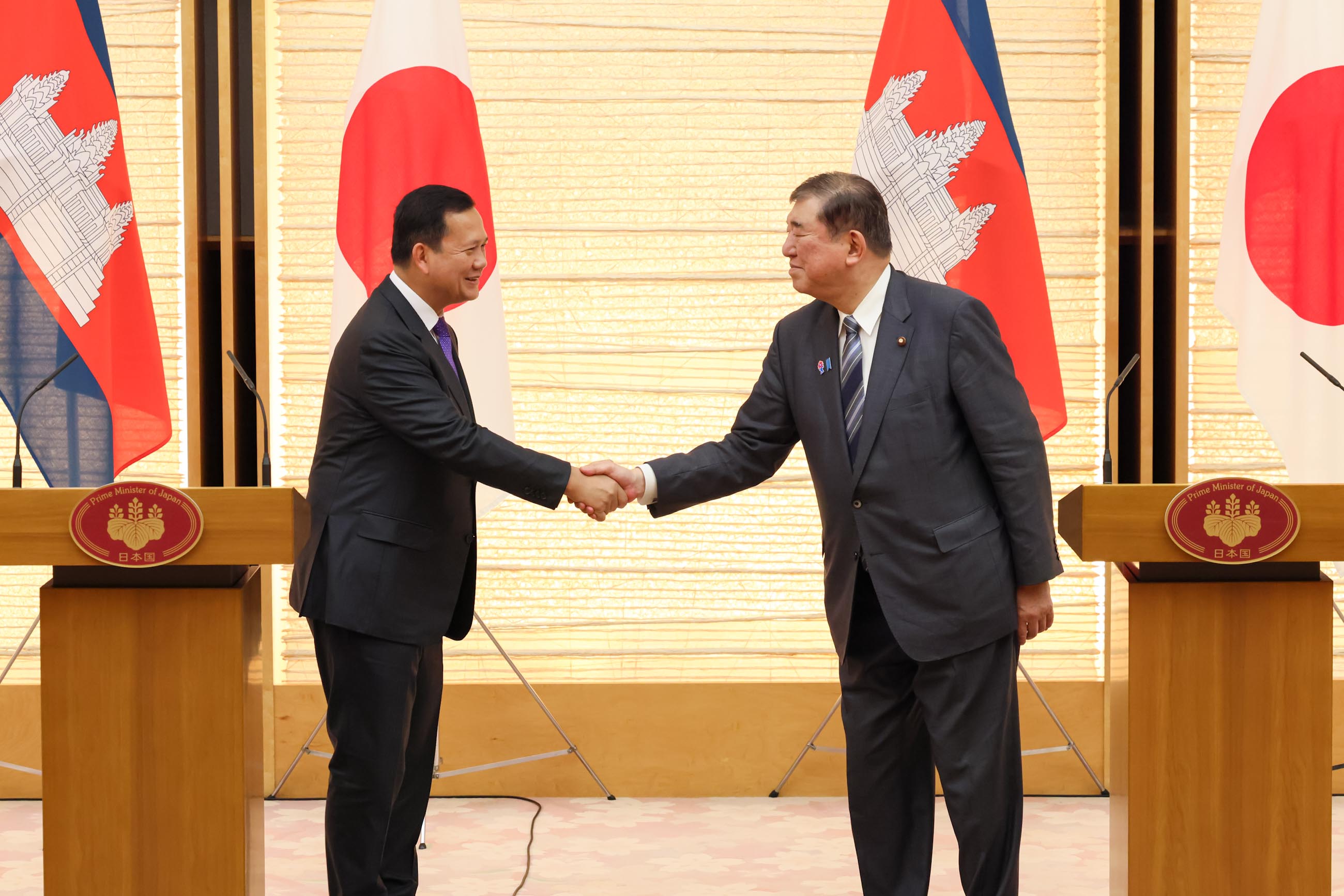 日・カンボジア首脳会談 更新日:令和7年5月30日 総理の一日 ツイート 日・カンボジア首脳会談1 フン・マネット首相を出迎える石破総理 儀じょう隊による栄誉礼及び儀じょう1 儀じょう隊による栄誉礼及び儀じょう2 儀じょう隊による栄誉礼及び儀じょう3 儀じょう隊による栄誉礼及び儀じょう4 儀じょう隊による栄誉礼及び儀じょう5 日・カンボジア首脳会談2 日・カンボジア首脳会談3 日・カンボジア首脳会談4 日・カンボジア首脳会談5 共同記者発表に臨む両首脳 共同記者発表1 共同記者発表2 共同記者発表3 共同記者発表4 共同記者発表5 共同記者発表6 共同記者発表7 関連動画開く閉じる 動画が再生できない方はこちら(政府広報オンライン) 令和7年5月30日、石破総理は、総理大臣官邸でカンボジア王国のフン・マネット首相と首脳会談を行いました。 儀じょう隊による栄誉礼及び儀じょうに続き、両首脳は会談を行い、その後、共同記者発表を行いました。最後にワーキング・ディナーを行いました。