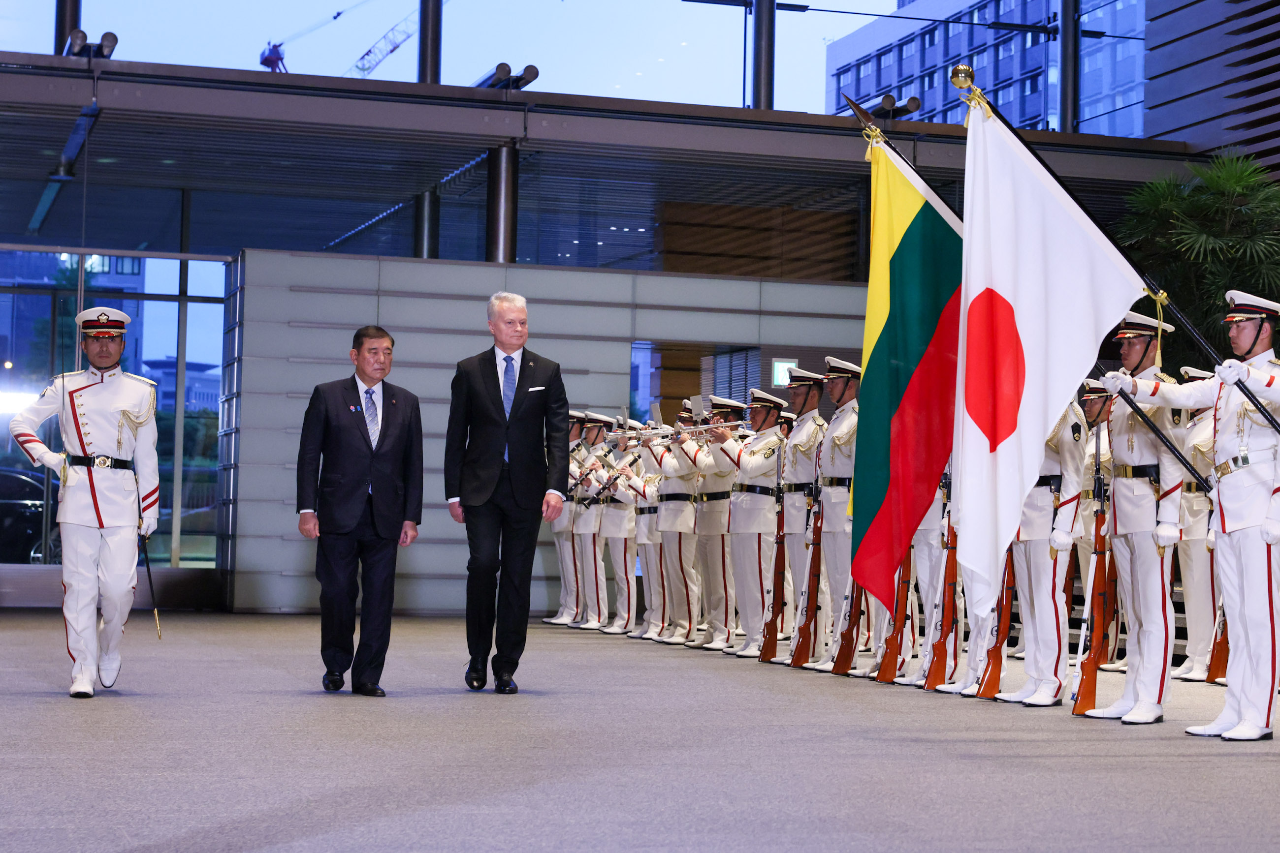 ナウセーダ・リトアニア大統領との会談 更新日:令和7年6月9日 総理の一日 ツイート ナウセーダ大統領と会談する石破総理1 ナウセーダ大統領を出迎える石破総理 儀じょう隊による栄誉礼及び儀じょう1 儀じょう隊による栄誉礼及び儀じょう2 儀じょう隊による栄誉礼及び儀じょう3 儀じょう隊による栄誉礼及び儀じょう4 儀じょう隊による栄誉礼及び儀じょう5 会談に臨む石破総理 ナウセーダ大統領と会談する石破総理2 ナウセーダ大統領と会談する石破総理3 ナウセーダ大統領と会談する石破総理4 ナウセーダ大統領と会談する石破総理5 関連動画開く閉じる 動画が再生できない方はこちら(政府広報オンライン) 令和7年6月9日、石破総理は、総理大臣官邸でリトアニア共和国のギターナス・ナウセーダ大統領と会談を行いました。 儀じょう隊による栄誉礼及び儀じょうに続き、会談を行い、最後にワーキング・ディナーを行いました。
