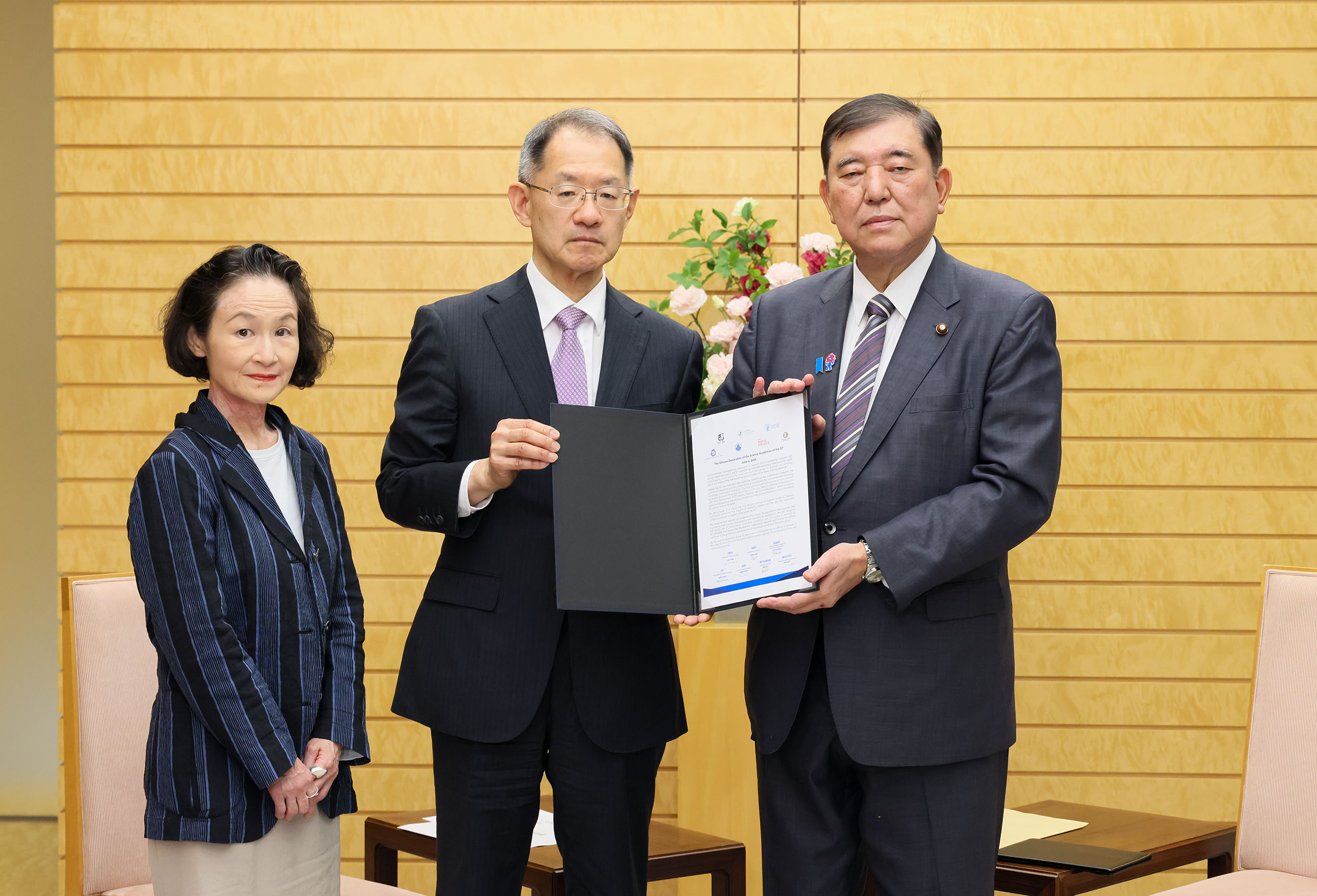 石破総理は、総理大臣官邸でノーベル化学賞の受賞が決定した京都大学の北川進特別教授とオンラインで面会し、祝意を伝えました。