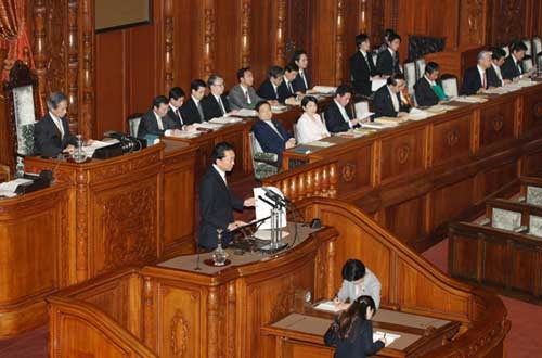 参議院本会議で施政方針演説を行う鳩山総理の写真1