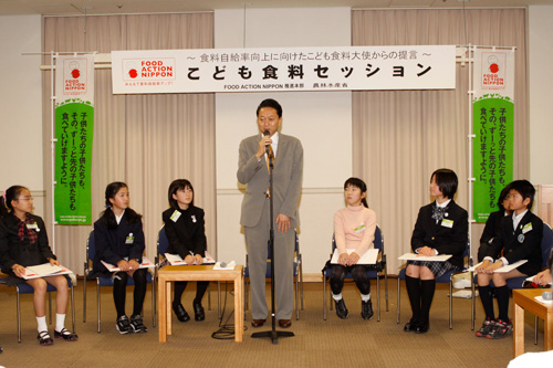鳩山総理は都内のホテルで開催された「こども食料セッション」に出席し、こども食料大使から食料自給率向上に向けた提言の報告を受けました。