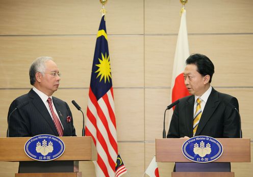 鳩山総理は、ナジブ首相の下でのマレーシアの経済発展に祝意を表すとともに、日本の国連常任理事国入りへの支持に対する謝意を述べました。