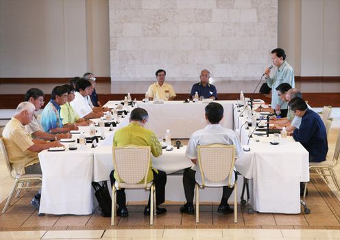 沖縄県庁にて仲井眞弘多沖縄県知事と面会した後、名護市に移動し北部市町村長との懇談会に出席しました。