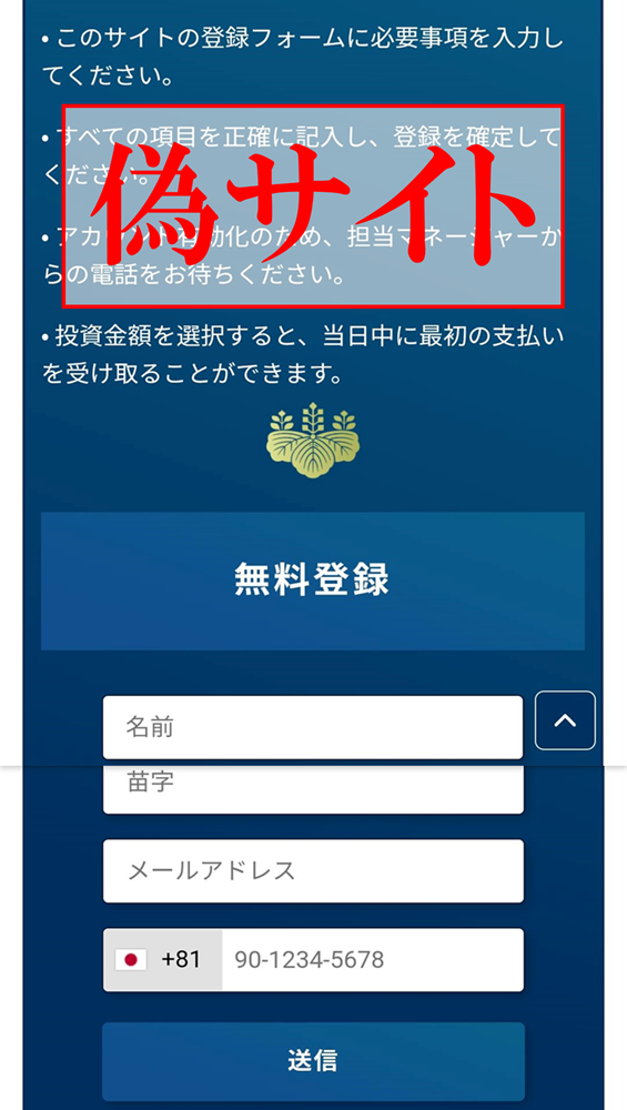 - 投資参加や登録を名目に、氏名・住所・電話番号・口座情報などの入力を求める