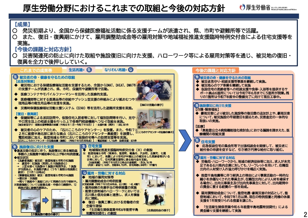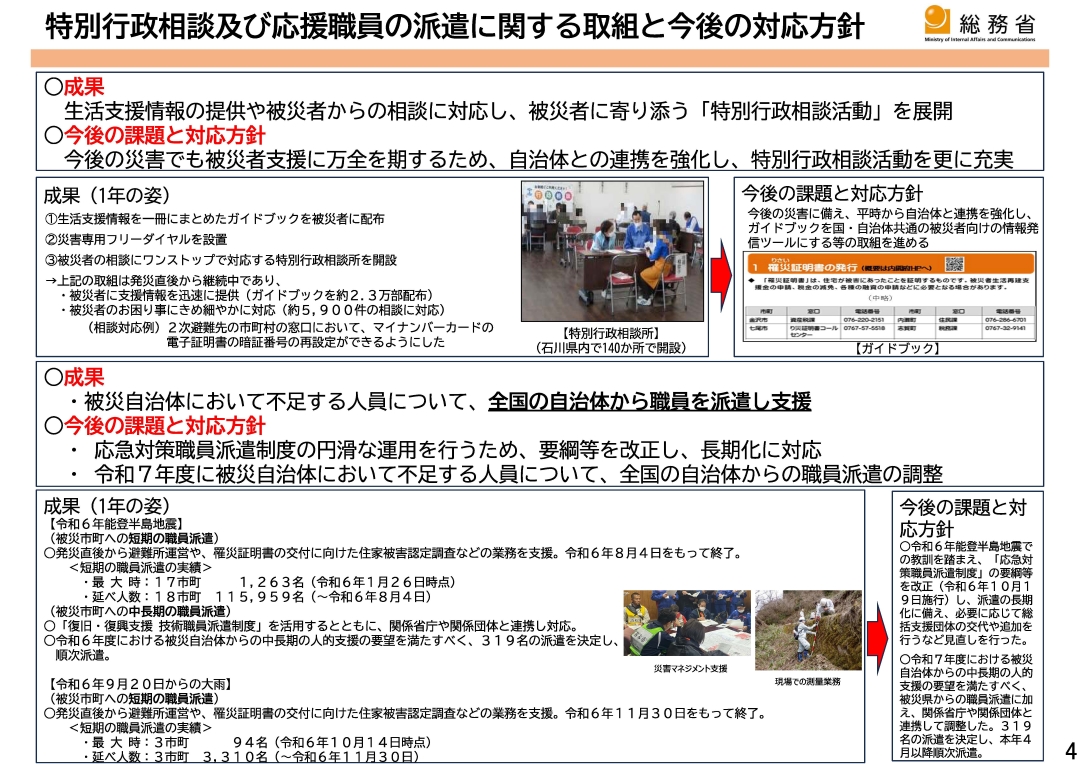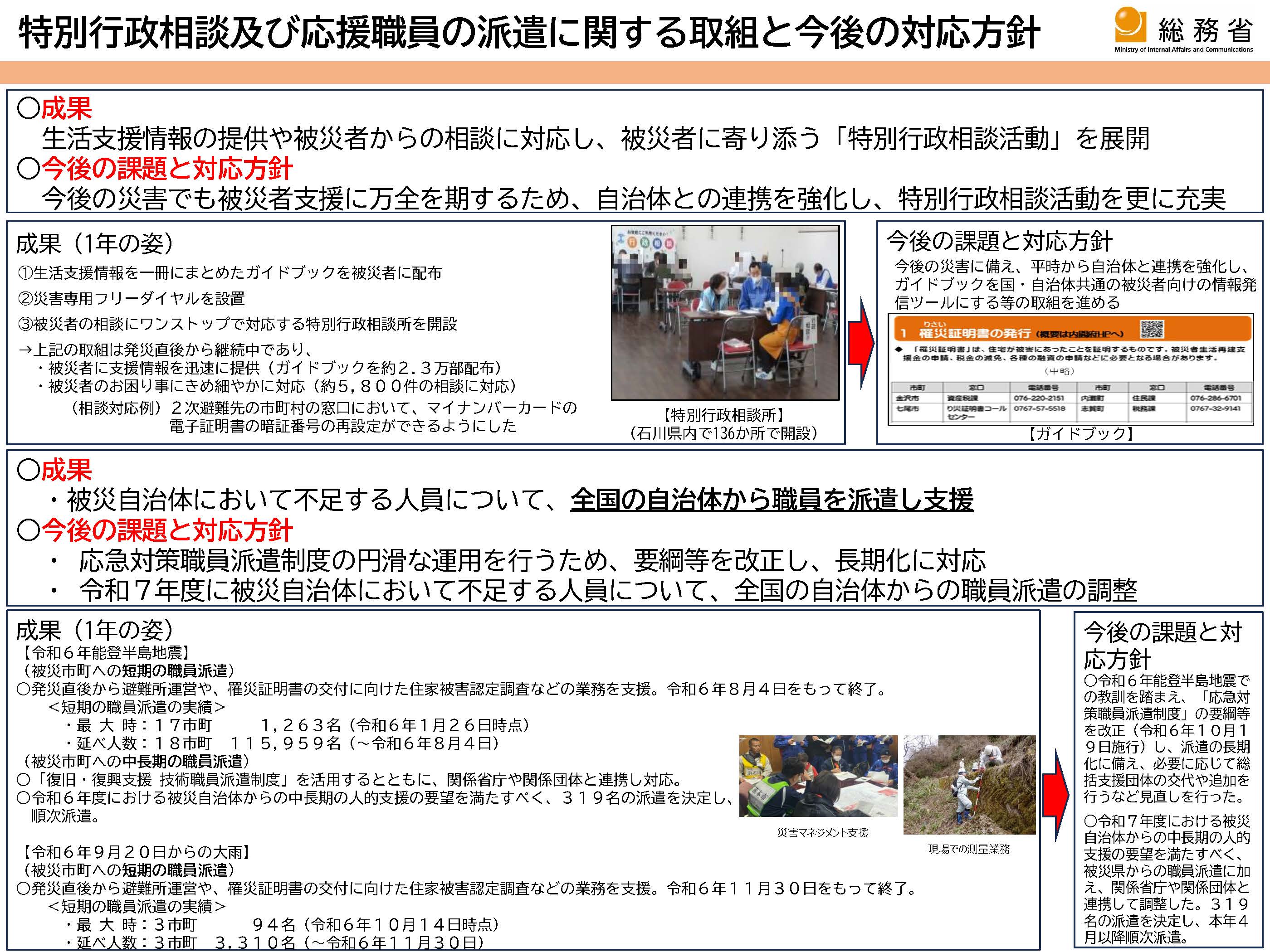 - 被災自治体において不足する人員について、全国の自治体から職員を派遣し支援