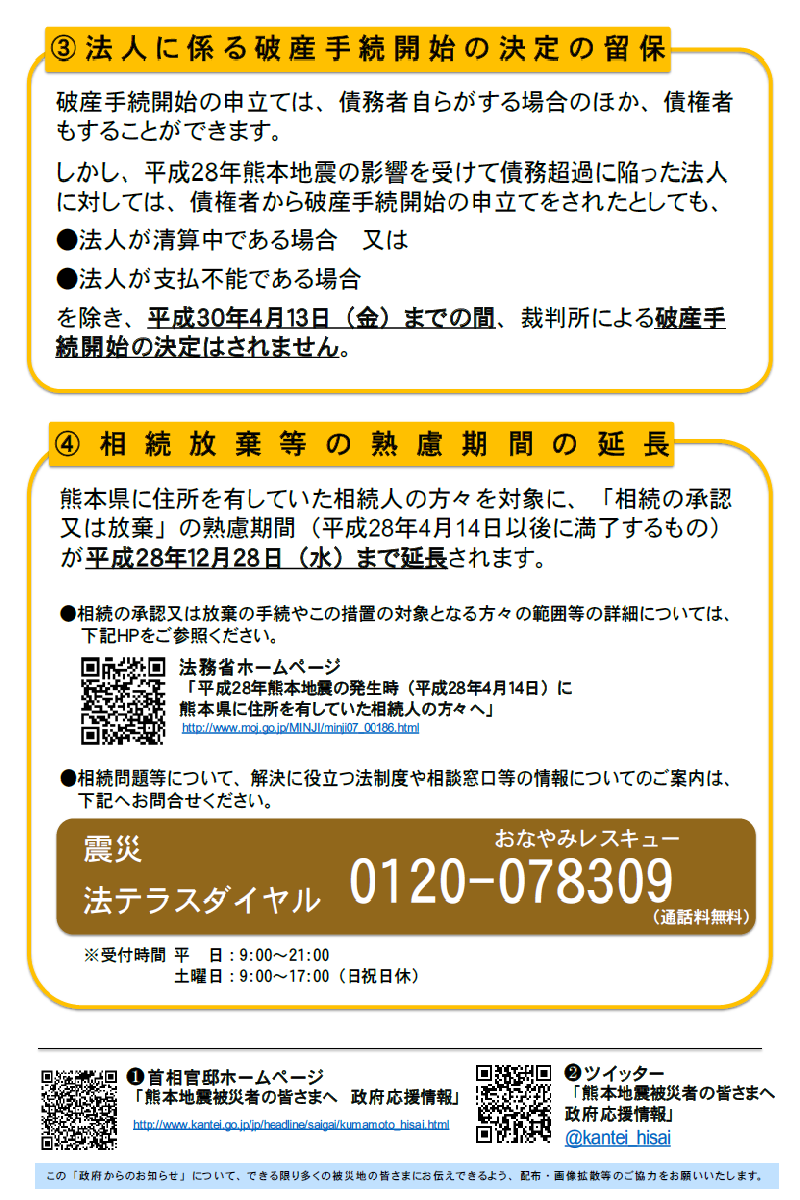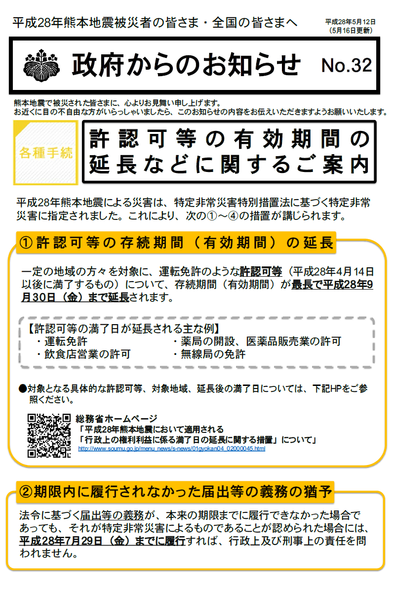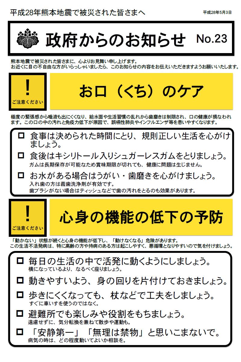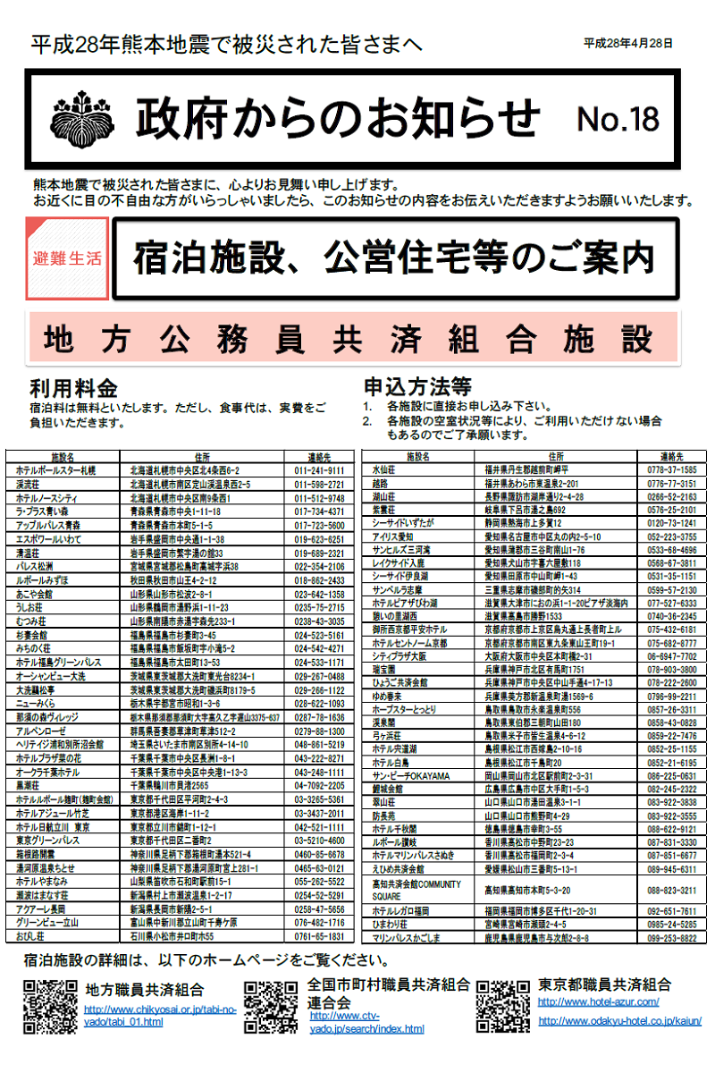 熊本地震被災者の皆さまへ 政府応援情報 政府からのお知らせ