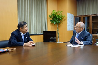 8月20日(木)、早稲田大学でスポーツ政策を専攻する間野義之教授が遠藤大臣を訪ね、意見交換を行いました。