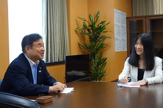 8月11日(火)、ジャーナリストの結城和香子さんが遠藤大臣を訪れ、意見交換を行いました。