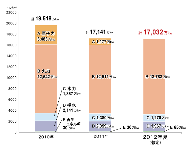 | (2) | 電力会社から情報の収集を行い、平成24年4月23日から5月12日までの合計6回にわたって今夏の需給見通しを検証しました。詳しい需給検証委員会の検証内容についてはこちらのサイトをご覧下さい。 |