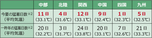①猛暑日(35℃以上)が一昨年の半分以下だった