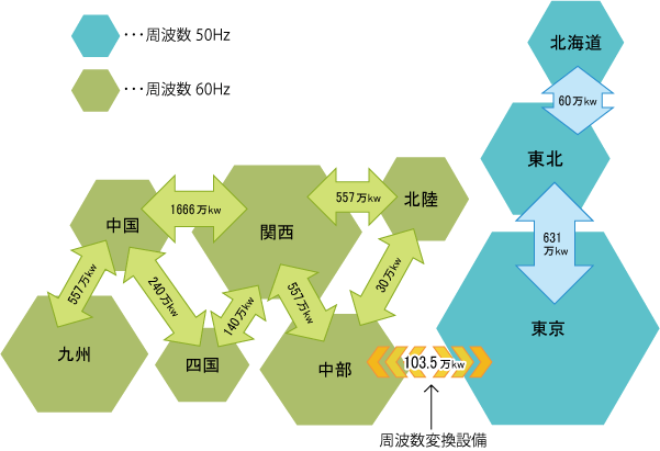 <電力の地域間連携線の現状>