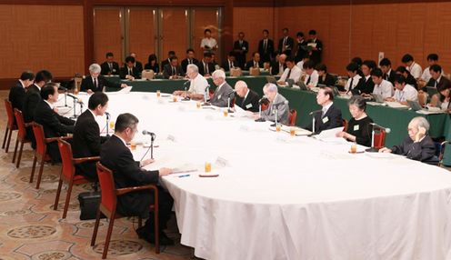 式典後、菅総理は平和記念資料館を視察しました。そして、長妻昭厚生労働大臣とともに、「被爆者代表から要望を聞く会」に出席、被爆者7団体の代表者らと話合いを行い、続いて記者会見に臨みました。