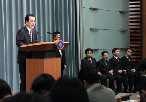 平成23年4月1日、菅総理は、平成23年度予算が成立したことを受けて、総理大臣官邸で記者会見を行いました。