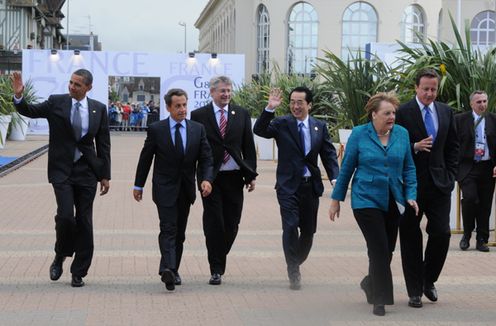 その後、ニコラ・サルコジ大統領の出迎えを受け、ワーキング・ランチが開催され、G8ドーヴィル・サミットが開幕しました。ワーキング・ランチでは「日本との連帯、世界経済、貿易」が議題とされ、菅総理から冒頭に発言がありました。