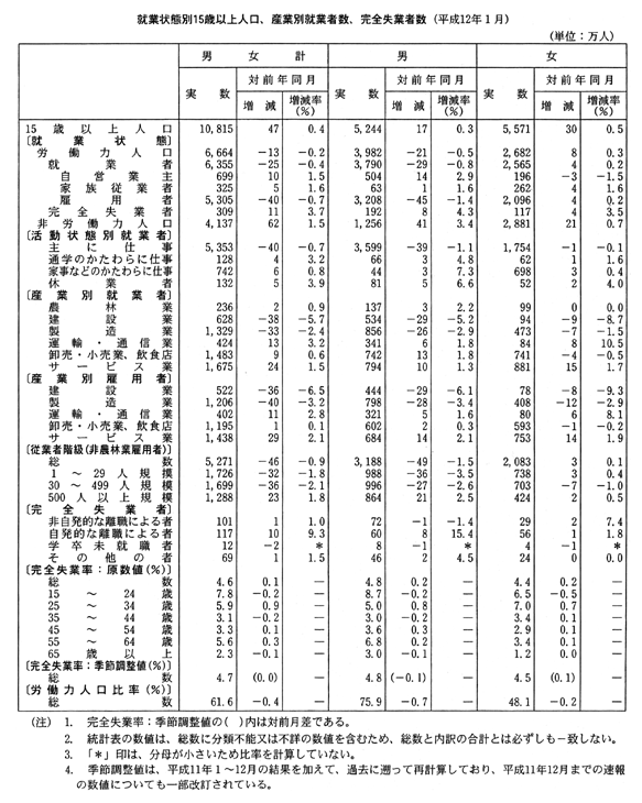 (注) 季節調整値は、毎年一月結果公表時に、前年十二か月分の結果を追加して再計算される。このため、本速報に掲載した季節調整値は、平成十二年一月結果公表時に一部改訂されることがある。