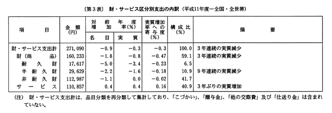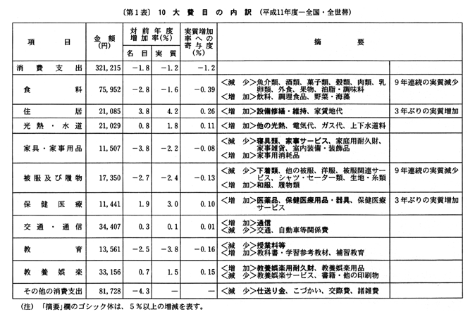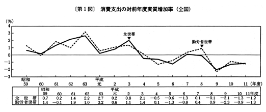 (1) 平成十一年の我が国経済は、極めて厳しかった十年に比べると、緩やかに改善した。個人消費は、年前半には回復の動きが見られたが、年央以降は厳しい所得環境を反映して足踏み状態となった。