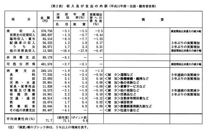 ▽平成十一年度平均家計収支………………………………………総 務 庁