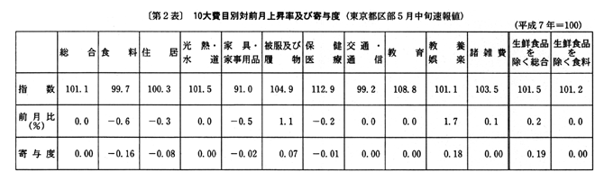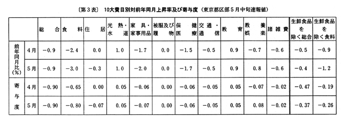 ▽消費者物価指数の動向(東京都区部五月中旬速報値)………総 務 庁