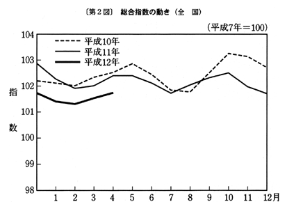 季節調整済指数をみると、総合指数は一〇一・五となり、前月に比べ〇・三%の下落となった。