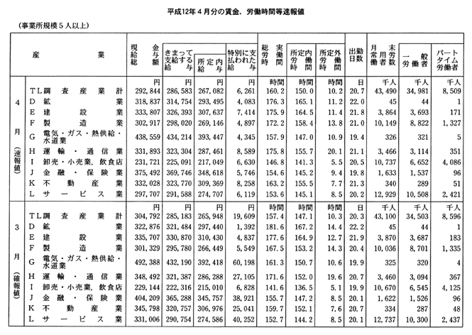 また、特別に支払われた給与は六千二百六十一円、前年同月比は七・五%減であった。