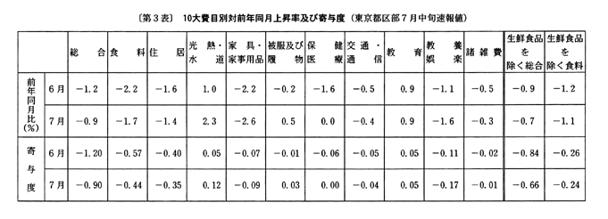 ◇七月の東京都区部消費者物価指数の動向