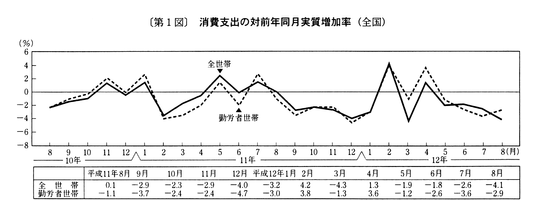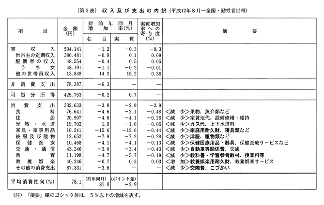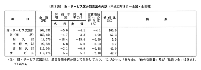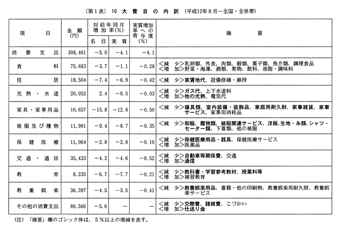 ▽普通世帯の消費動向調査(平成十二年九月実施調査結果)………経済企画庁