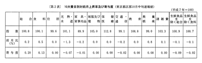 (1) 食料は一〇〇・七となり、前月に比べ〇・三%の上昇。