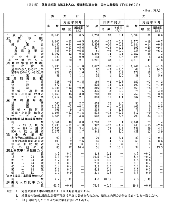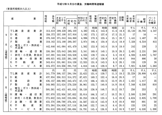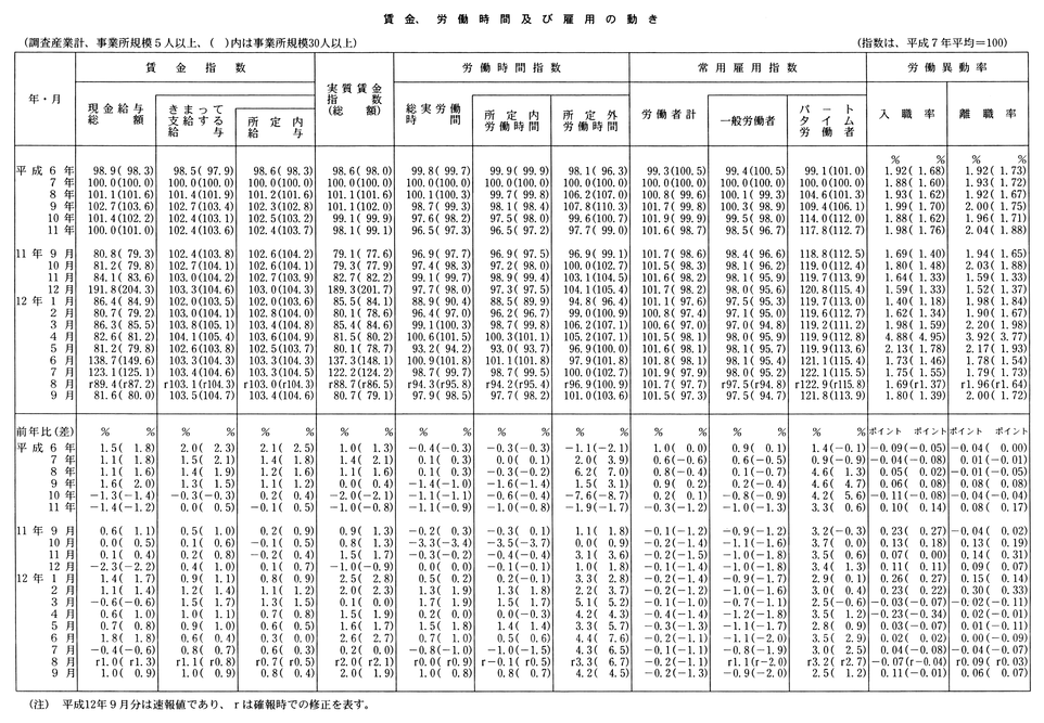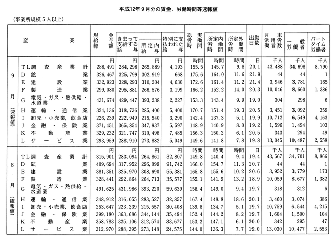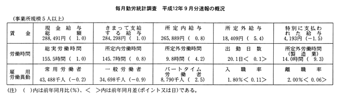 ▽労働力調査(平成十二年九月及び平成十二年七〜九月平均結果の概要)………総 務 省