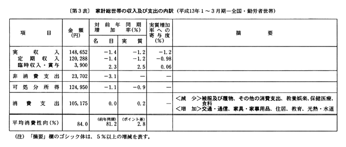 家計総世帯の勤労者世帯の実収入は、実質減少となった。