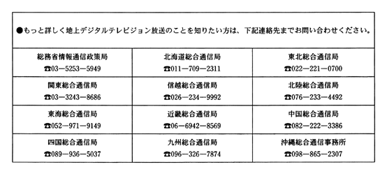 平成十二年十二月一日、日本で初めて衛星放送を利用した「BSデジタル放送」が開局されました。従来のテレビにはない高音質、高画質を可能にし、視聴者がドラマやクイズ番組に参加できる双方向のテレビ番組など、テレビの新たな可能性を切り開くメディアとして、社会の熱い関心を集めています。