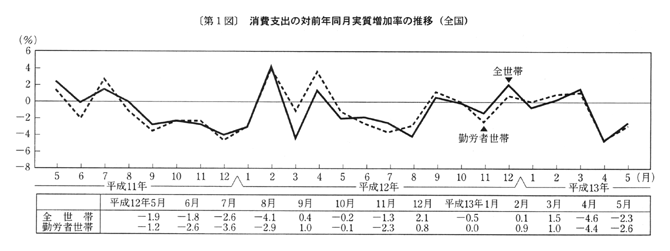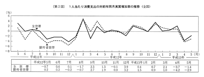 家事用消耗品が一・九%の下落。