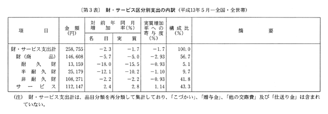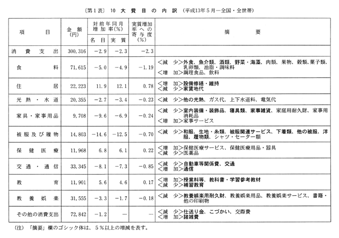 通信(五・八%下落)、衣料(三・二%下落)、家庭用耐久財(六・一%下落)、穀類(二・四%下落)