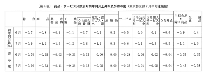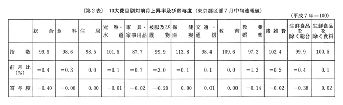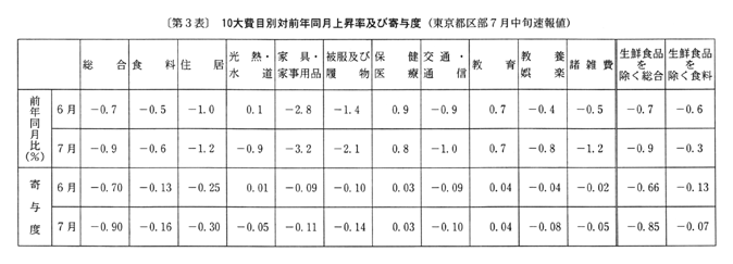 ◇七月の東京都区部消費者物価指数の動向