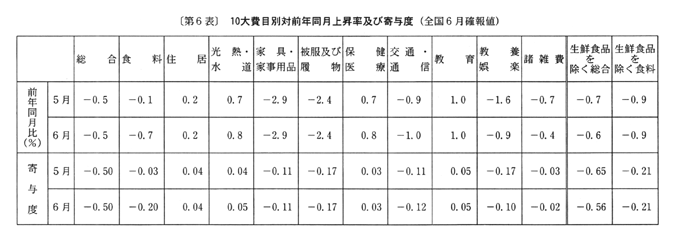 ◇六月の全国消費者物価指数の動向