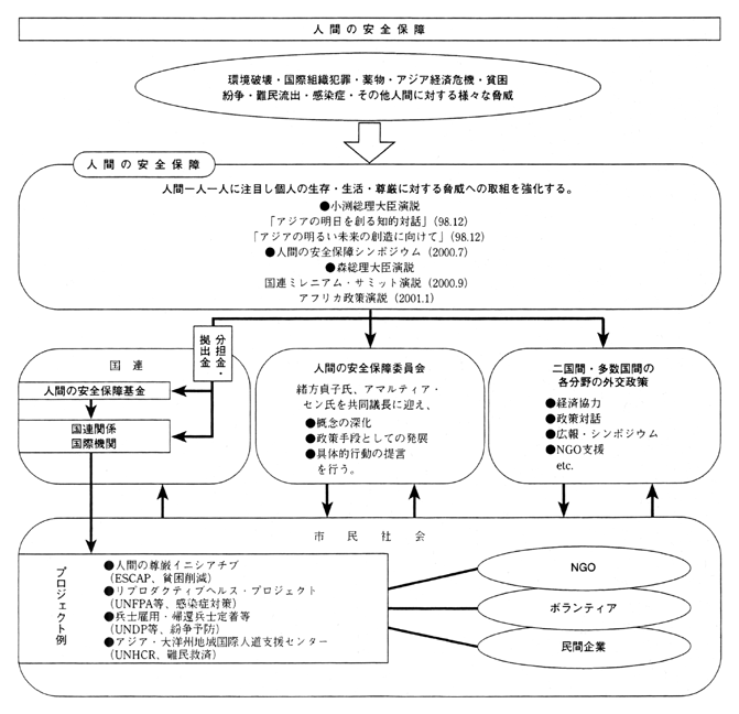 また、アジア太平洋地域で徐々に機運の高まっている地域協力に加え、国際連合、人間の安全保障の分野での日本の取組を紹介している。